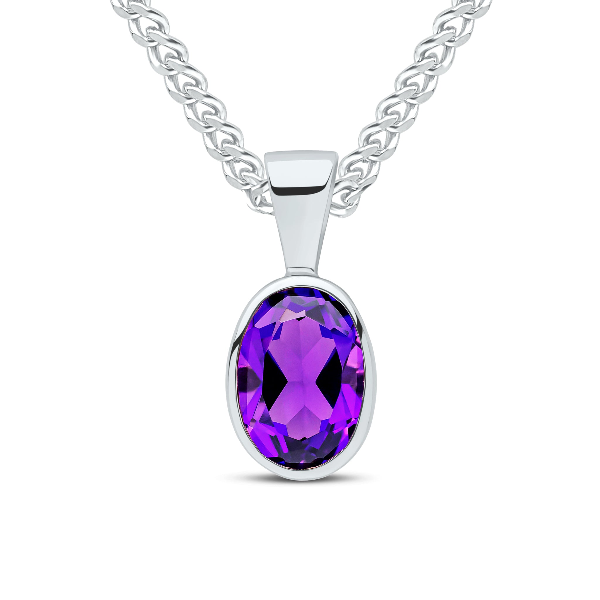 9CT White Gold Oval Amethyst Rubover Pendant 7x5mm
