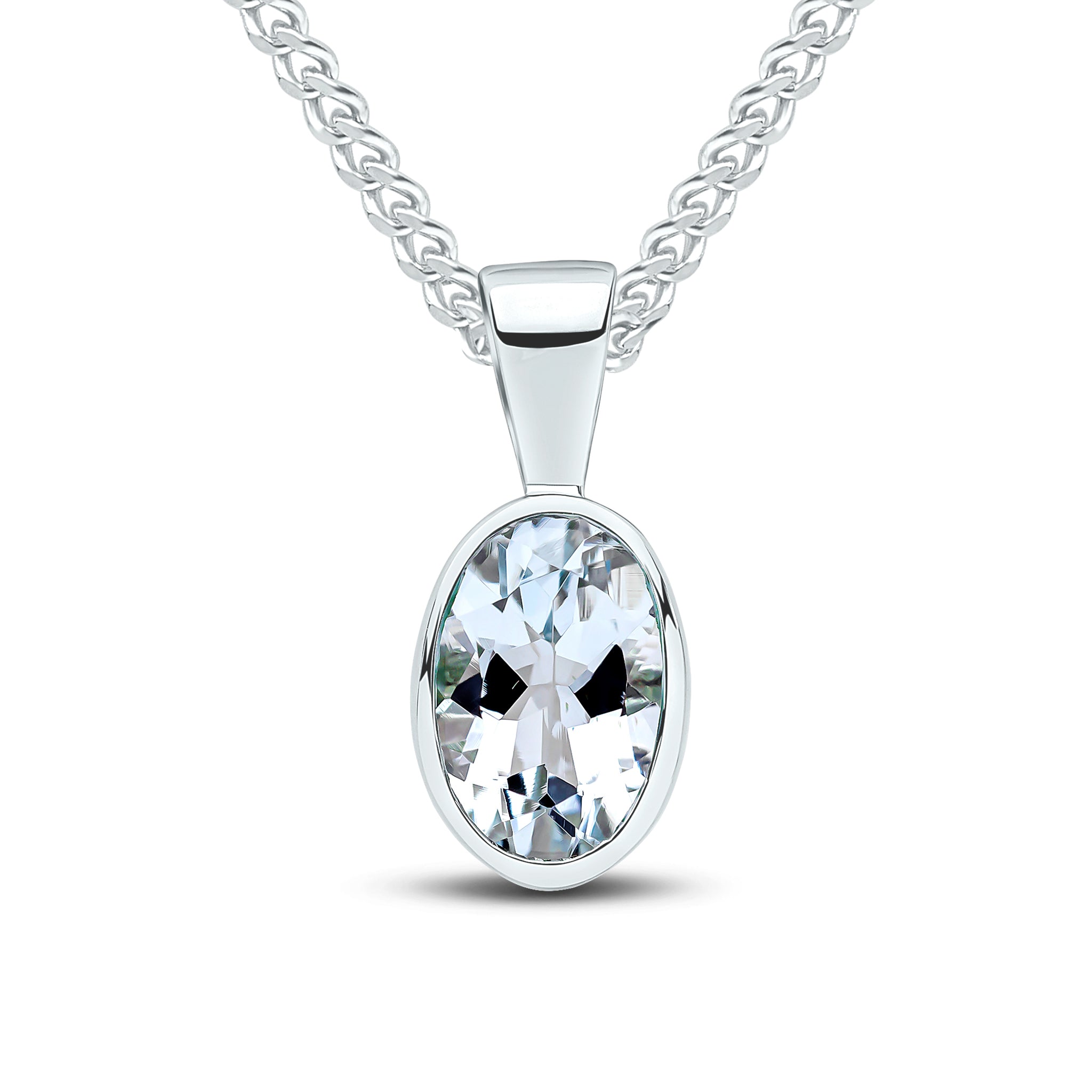9CT White Gold Oval Aquamarine Rubover Pendant 7x5mm