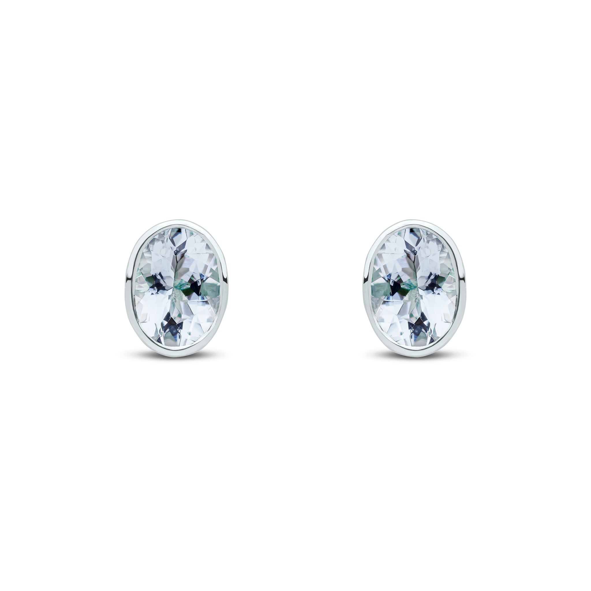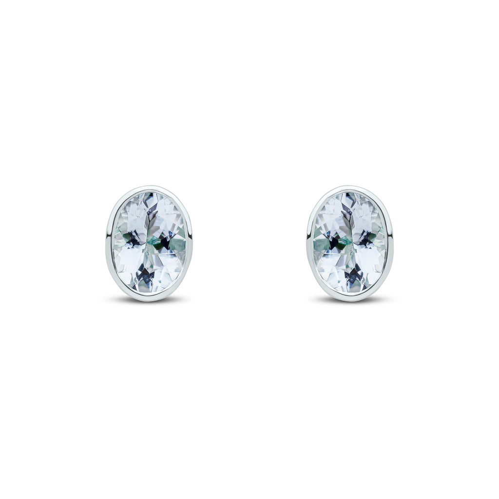 9CT White Gold Oval Aquamarine Rubover Stud Earrings 7x5mm