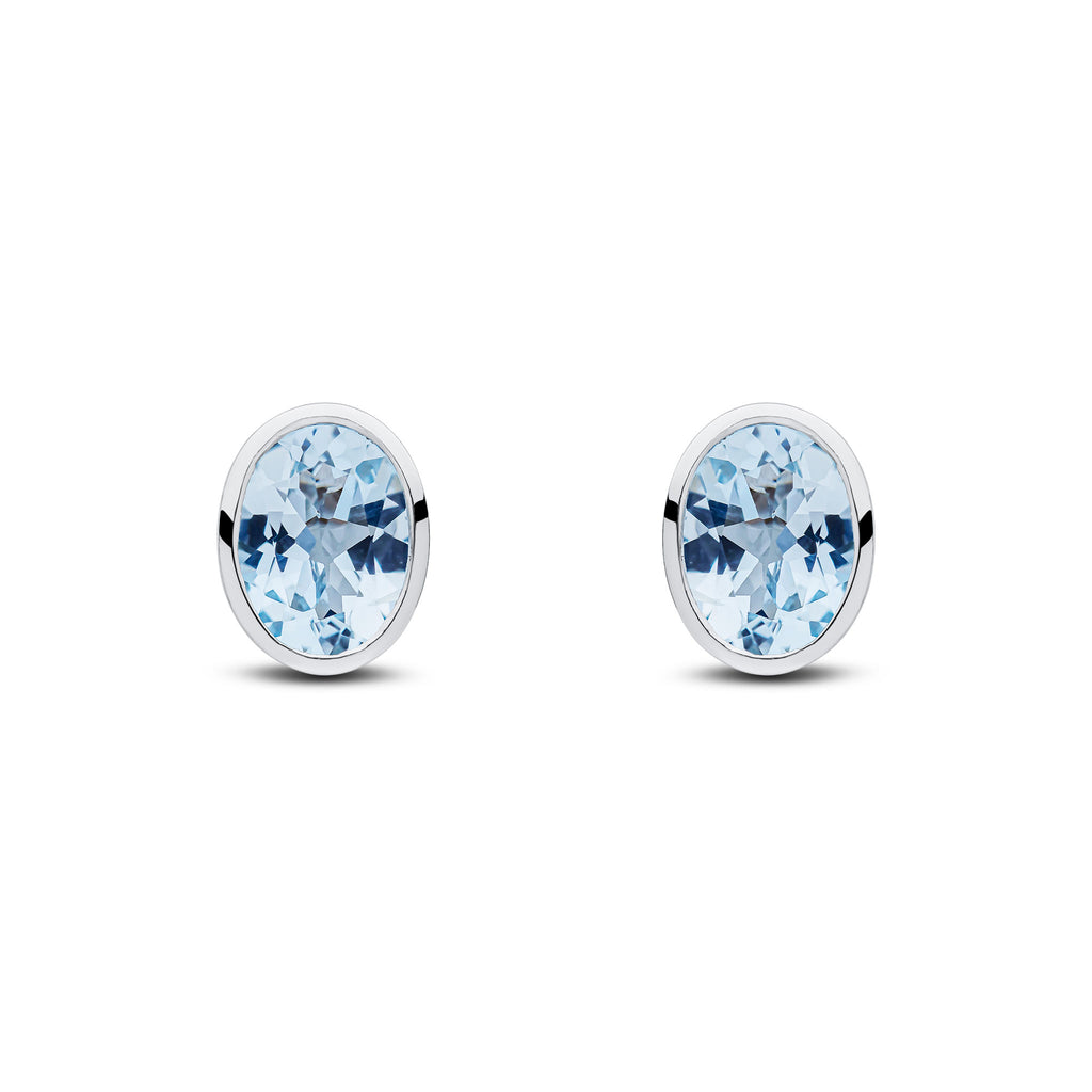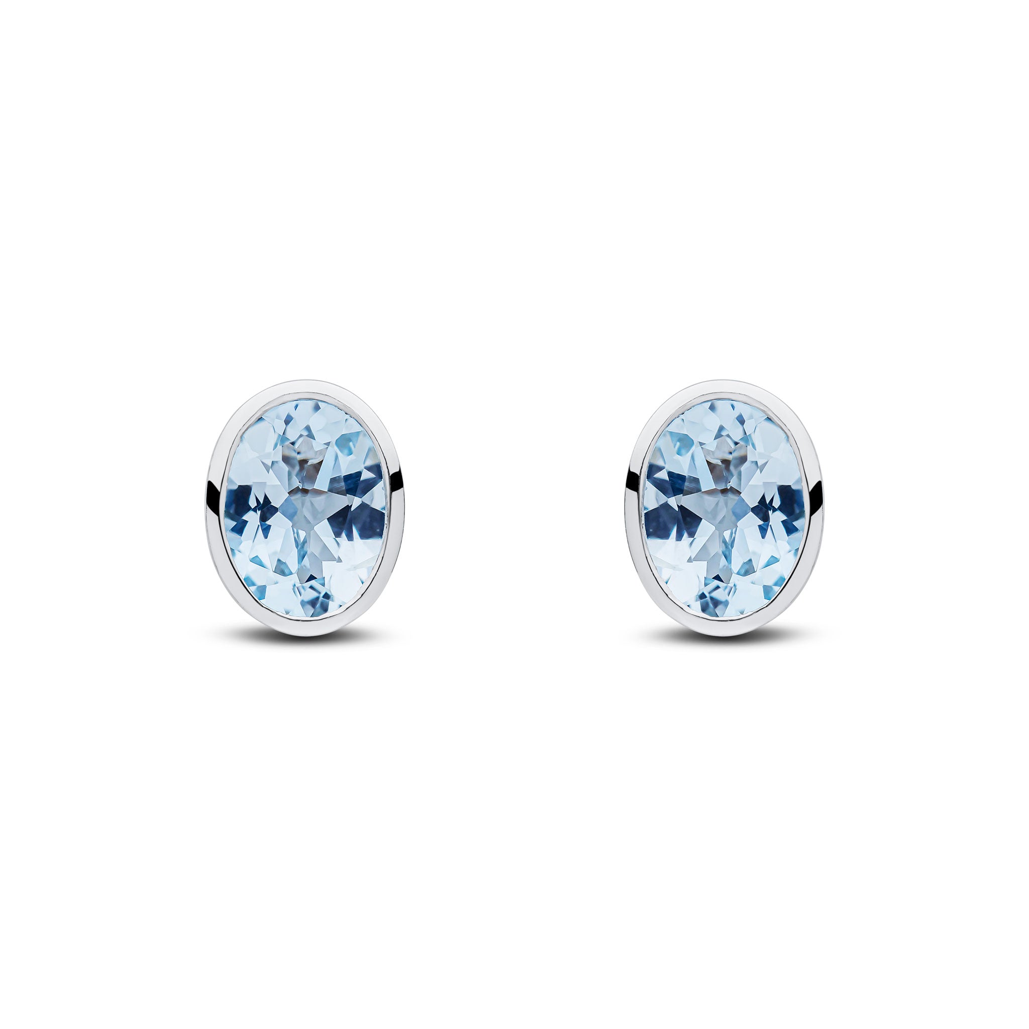 9CT White Gold Oval Aquamarine Rubover Stud Earrings 8x6mm