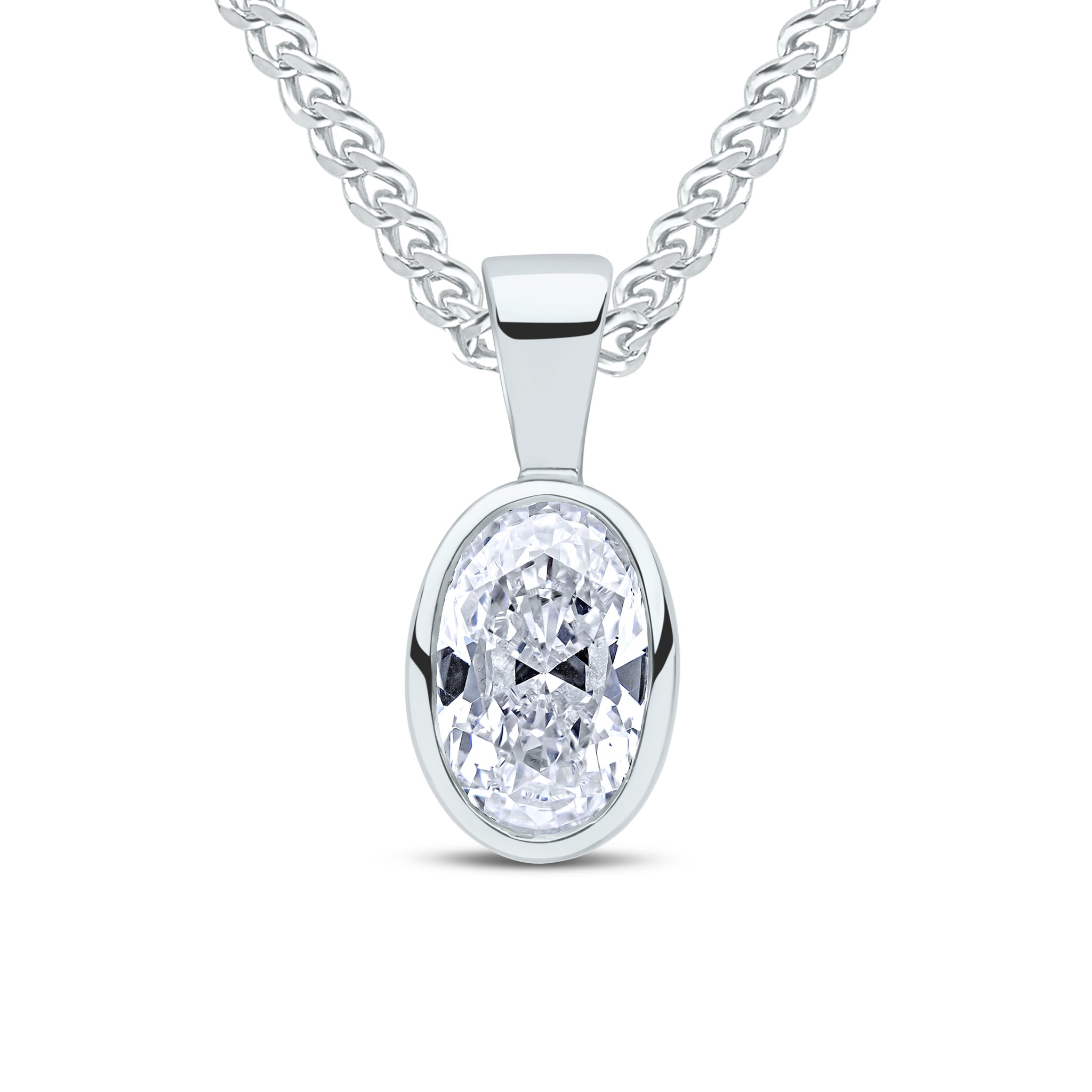 9CT White Gold Oval Cubic Zirconia CZ Rubover Pendant 7x5mm