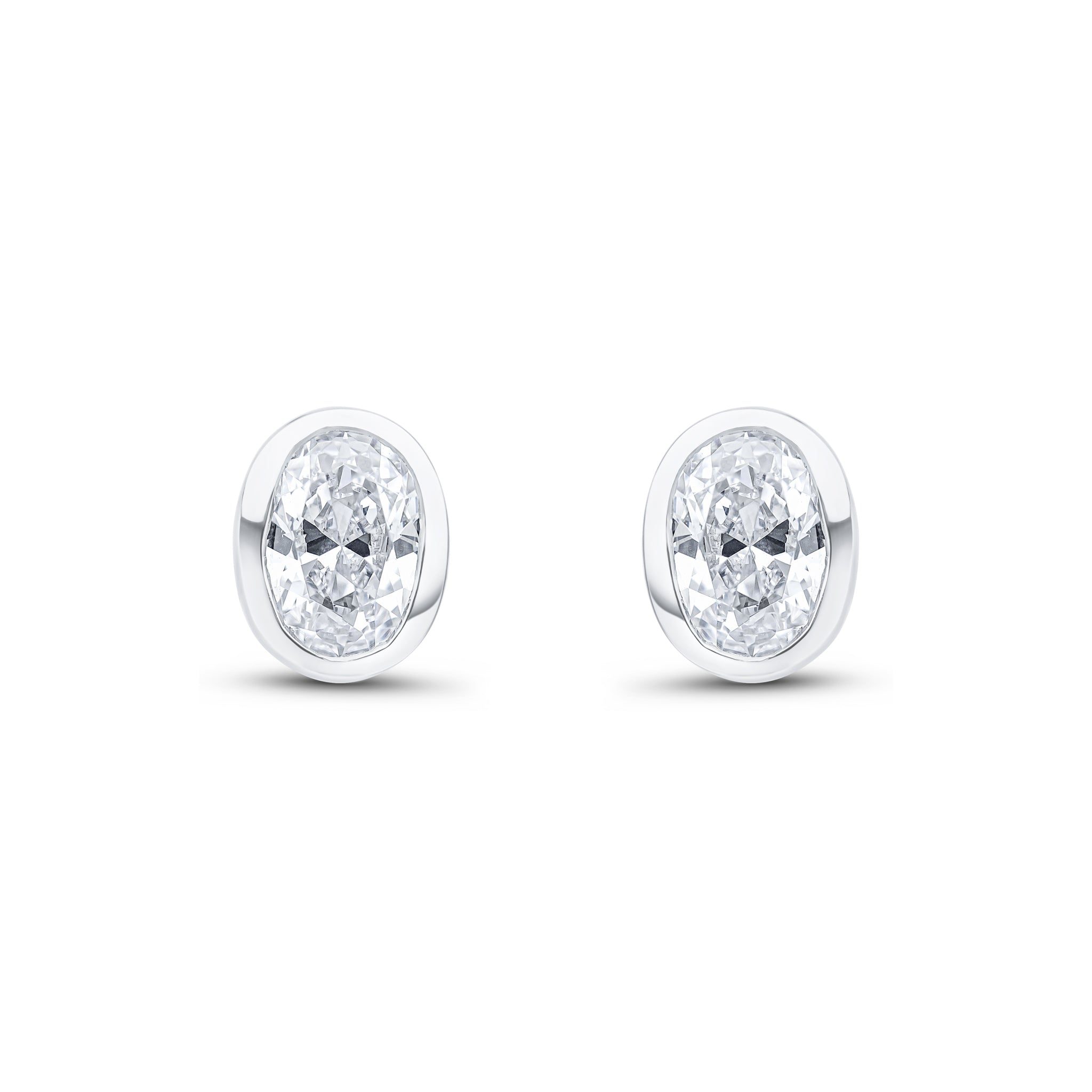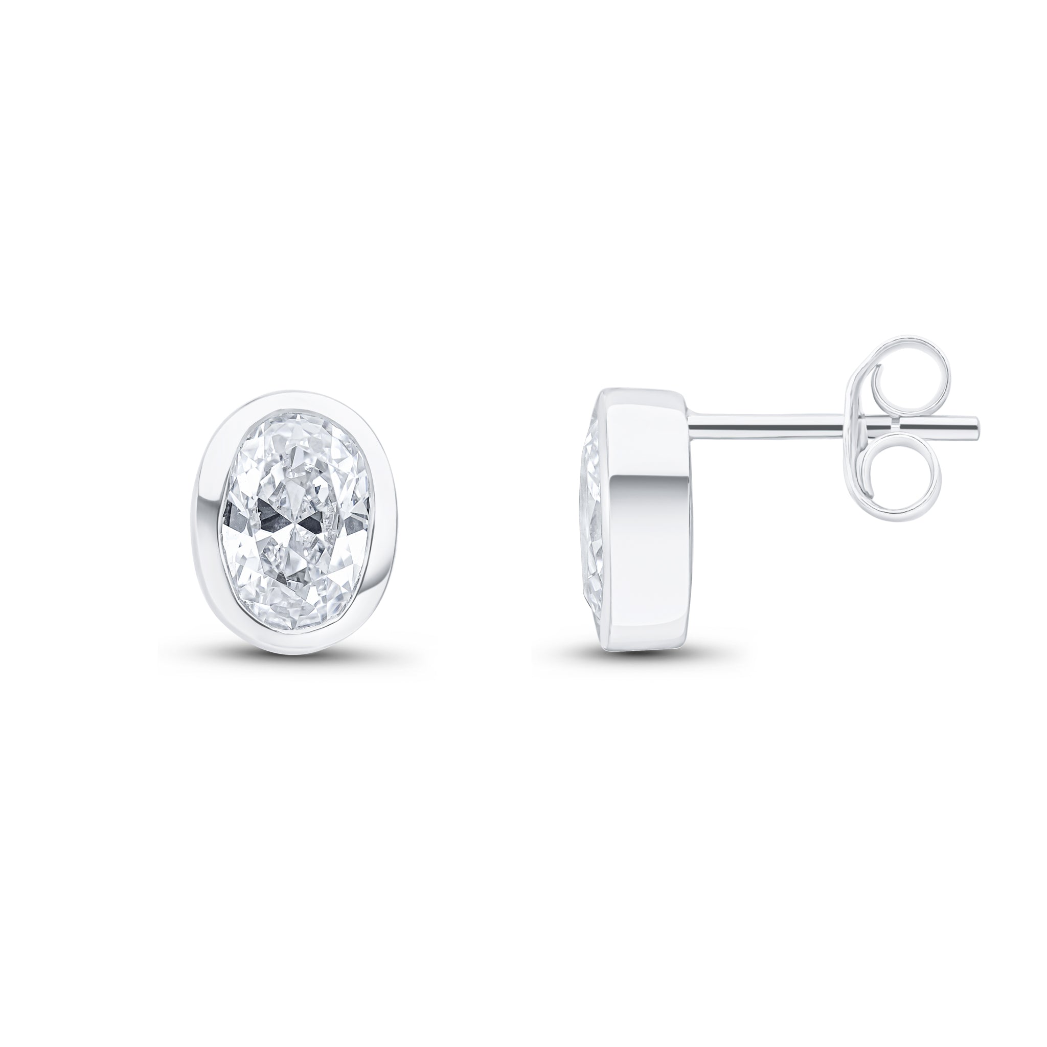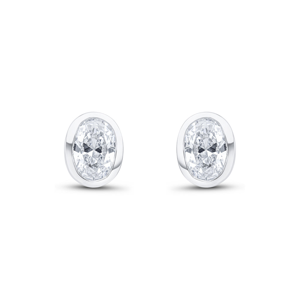 9CT White Gold Oval Cubic Zirconia CZ Rubover Stud Earrings 7x5mm