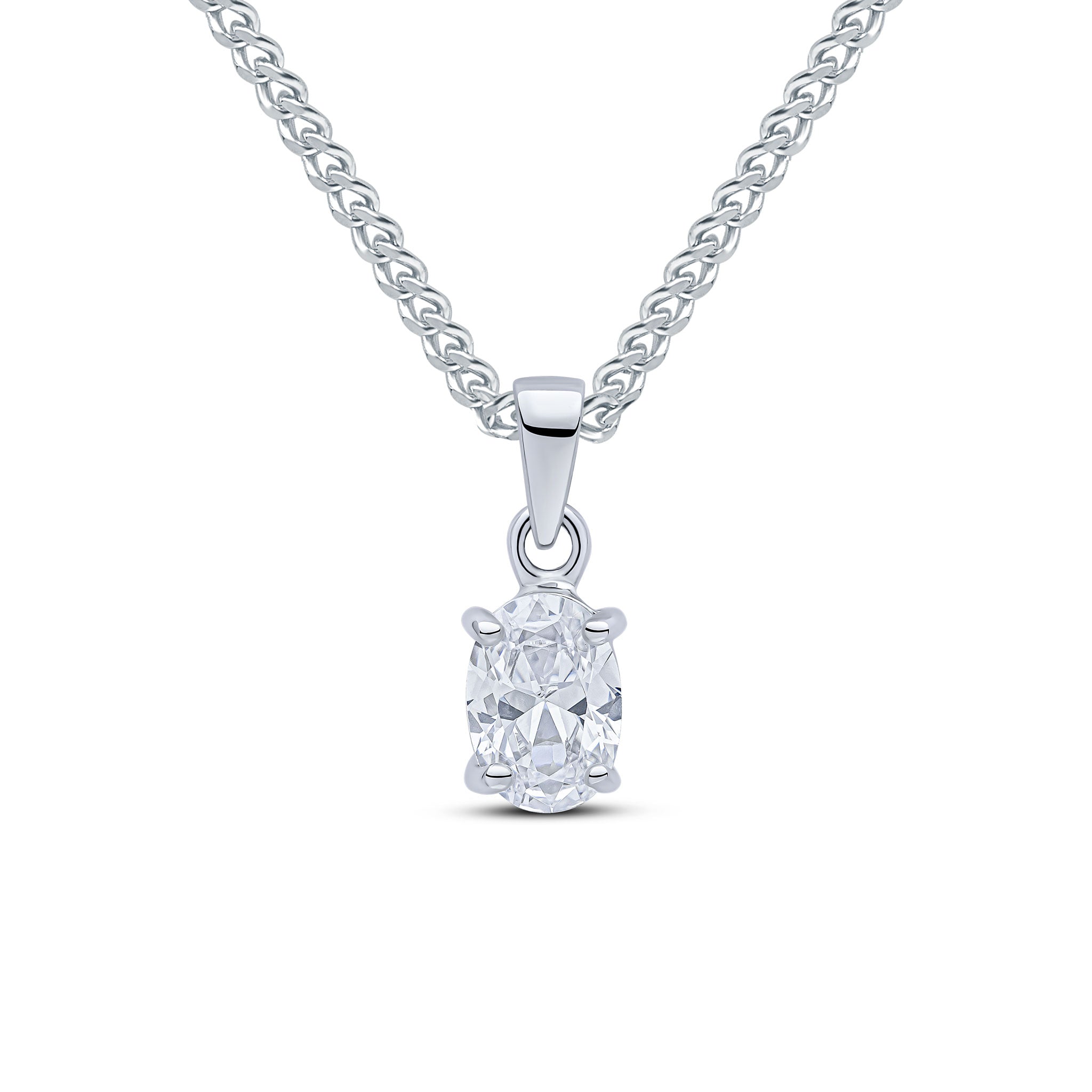 9CT White Gold Oval CZ Cubic Zirconia Claw Pendant 7x5mm