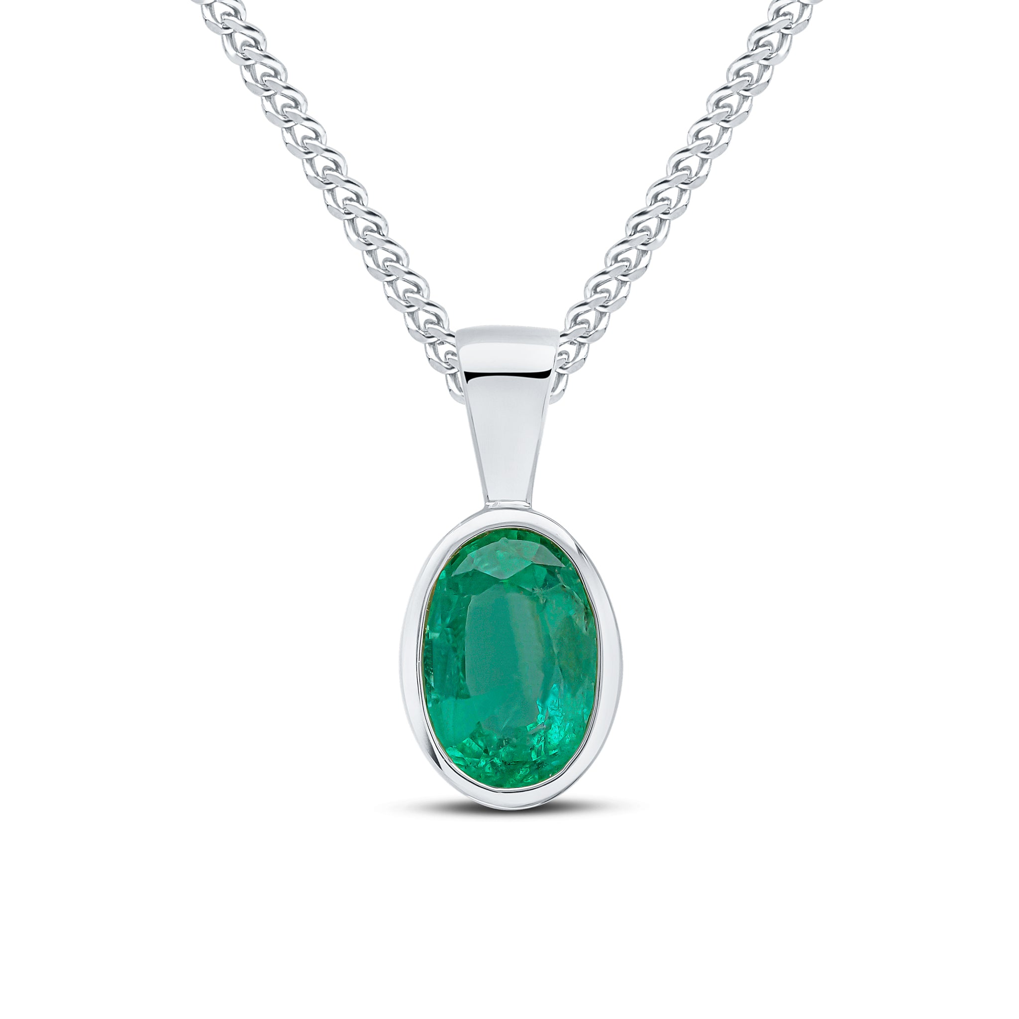 9CT White Gold Oval Emerald Rubover Pendant 7x5mm