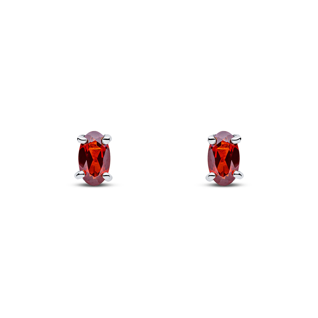 9CT White Gold Oval Garnet Claw Stud Earrings 5x3mm