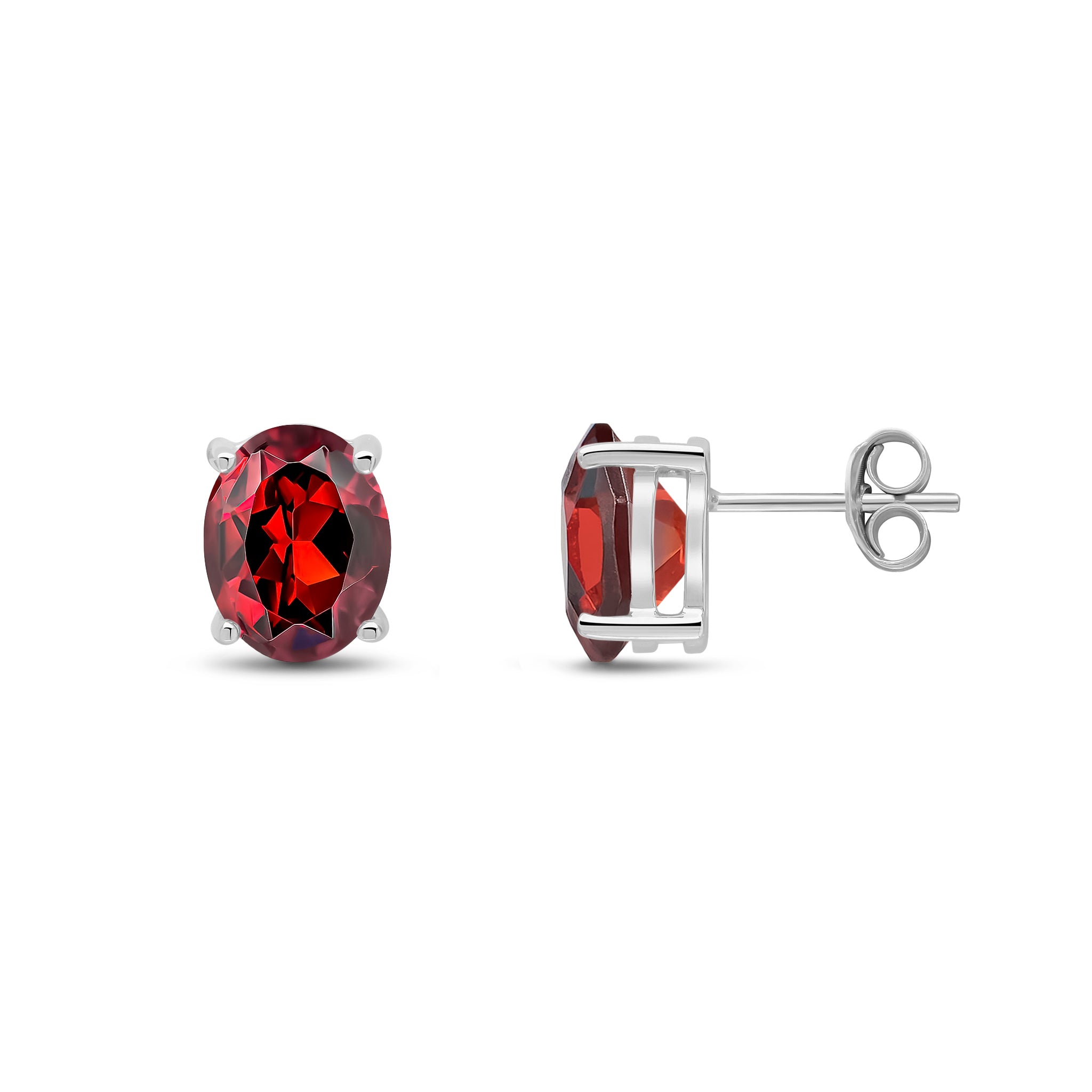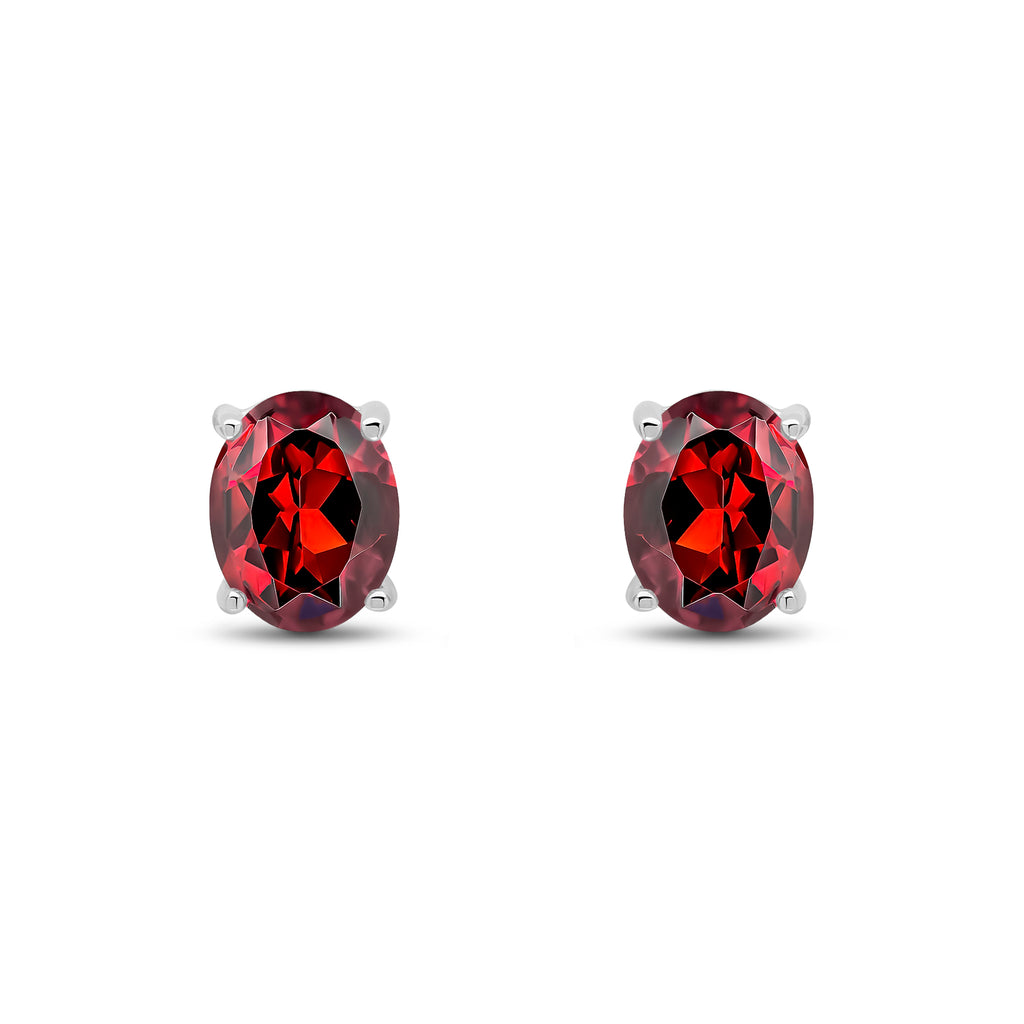 9CT White Gold Oval Garnet Claw Stud Earrings 9x7mm