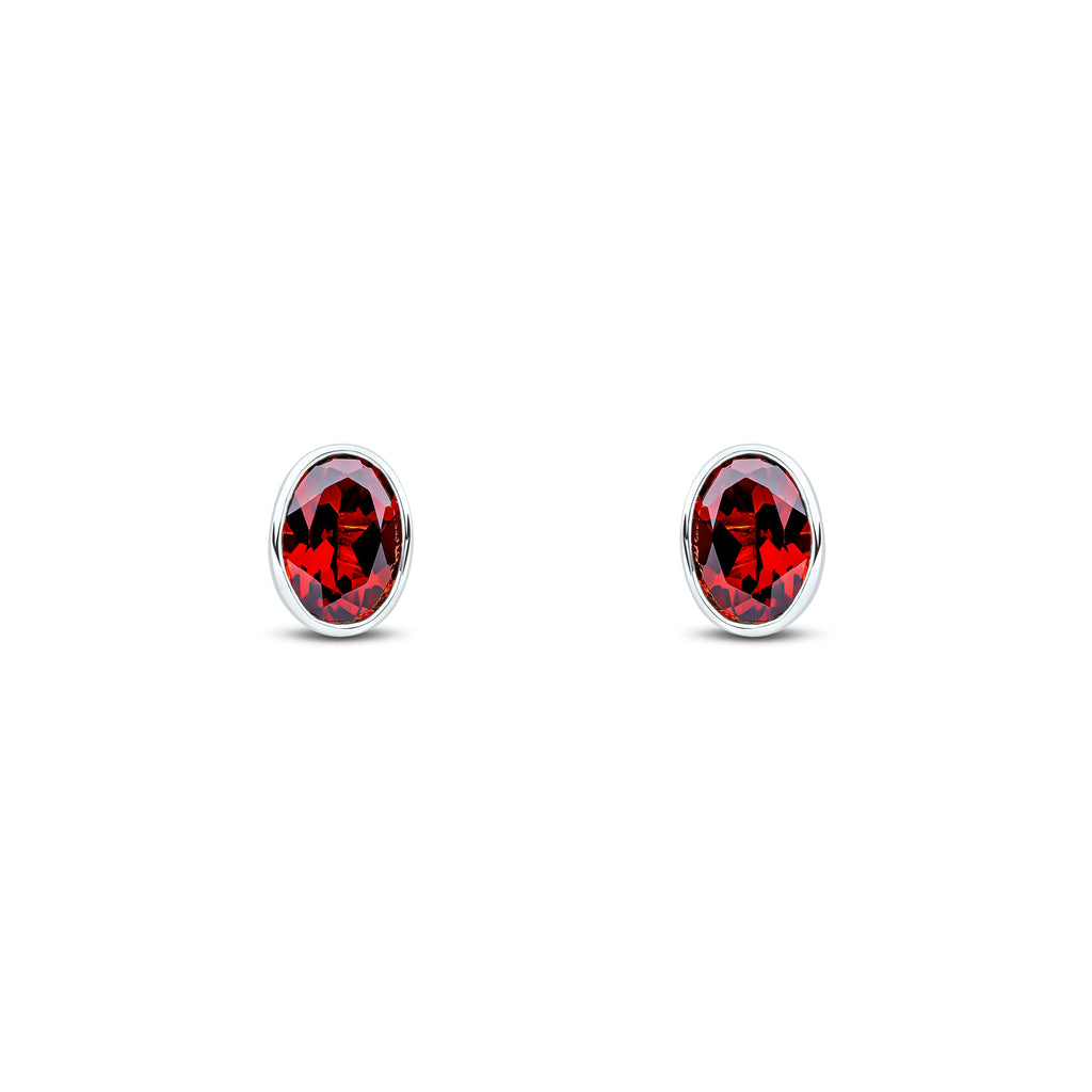9CT White Gold Oval Garnet Rubover Stud Earrings 7x5mm