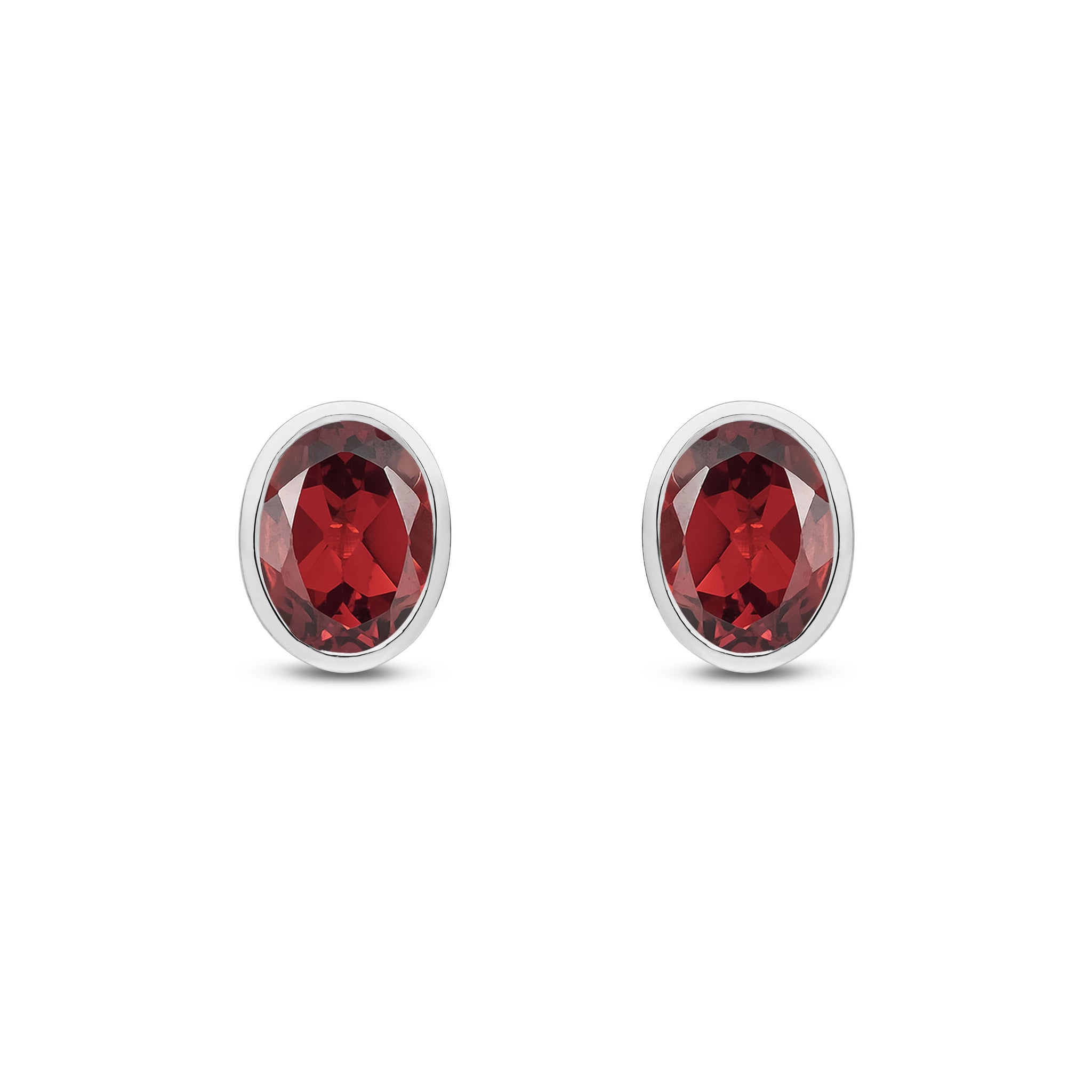 9CT White Gold Oval Garnet Rubover Stud Earrings 8x6mm
