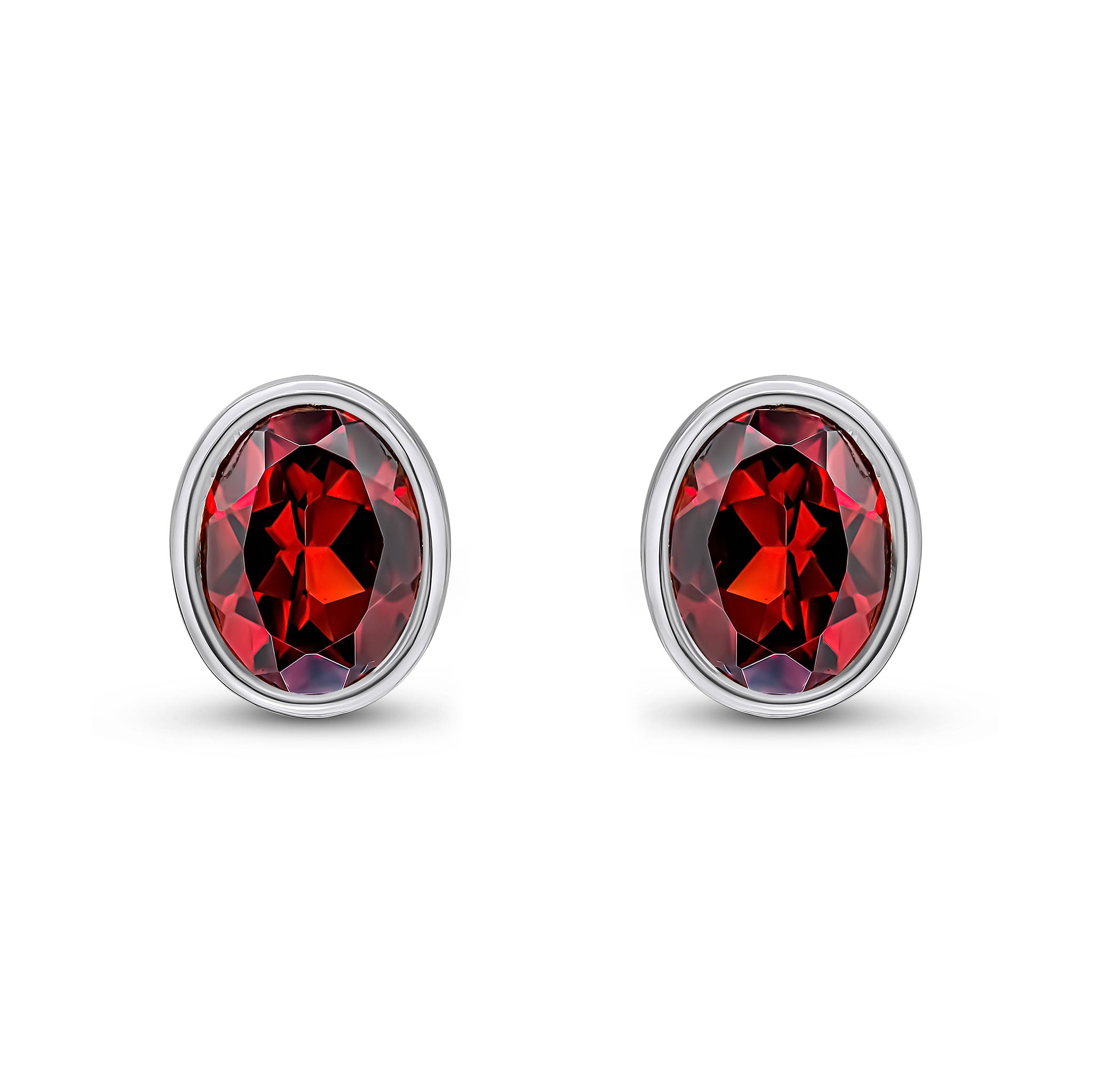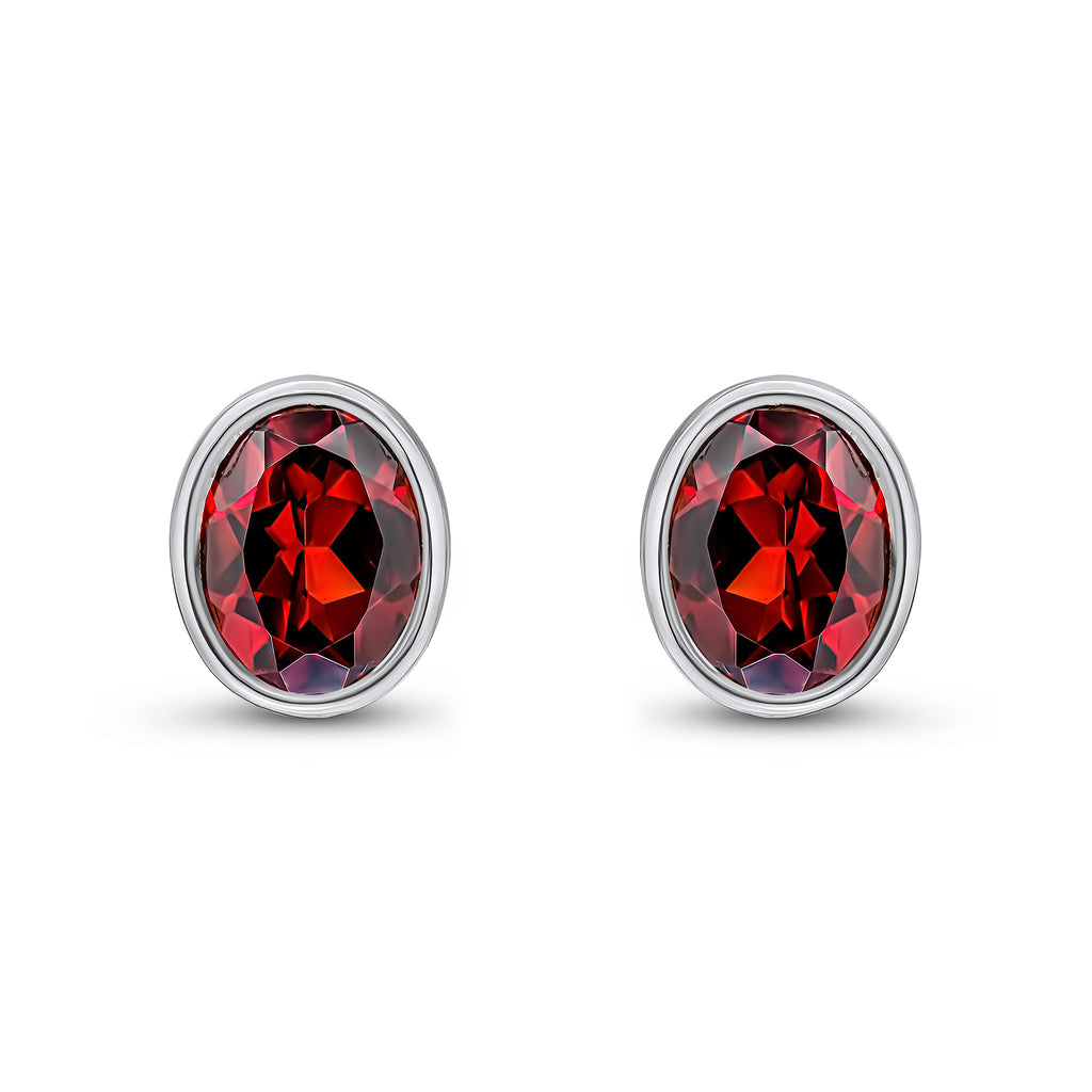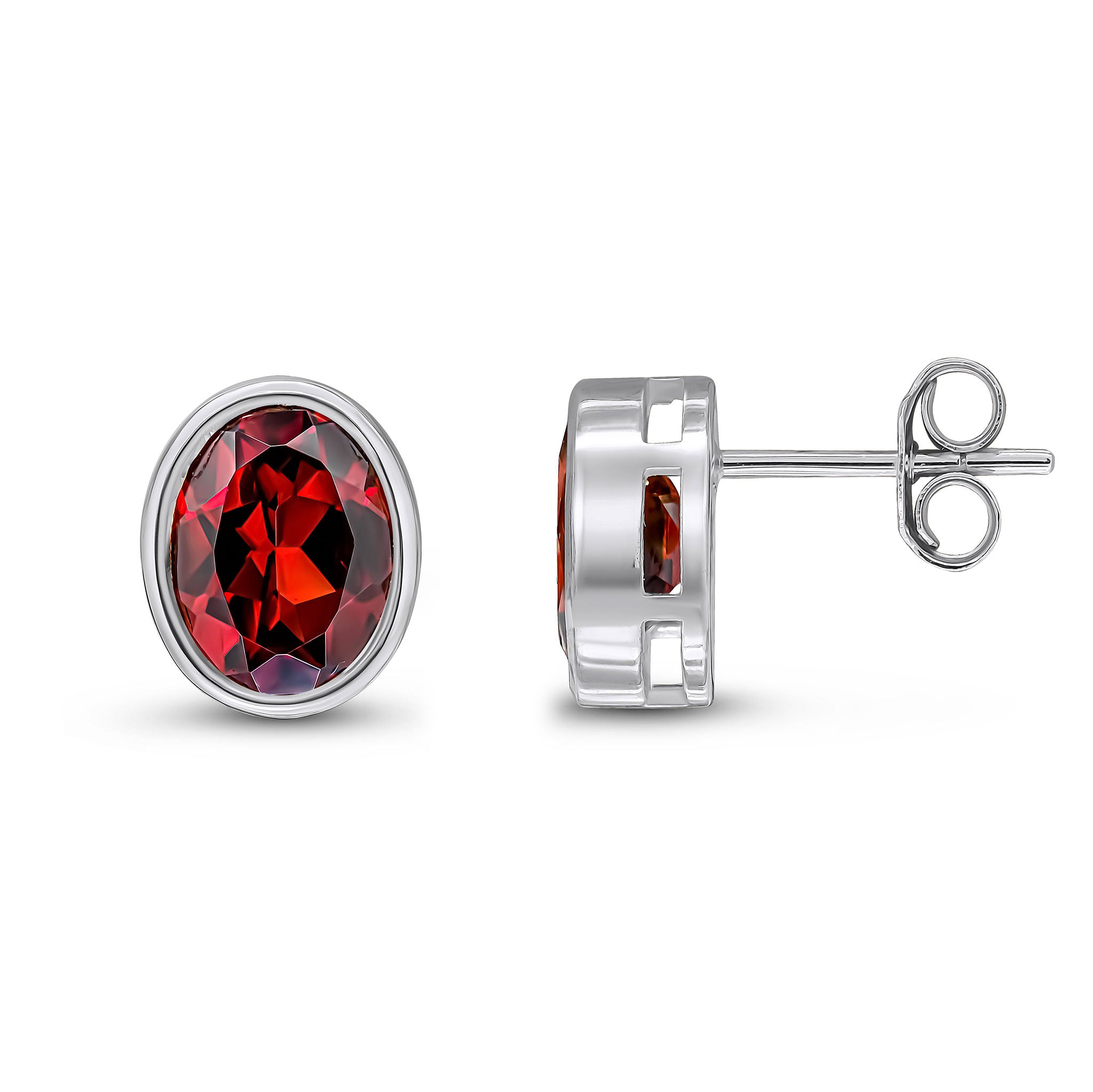 9CT White Gold Oval Garnet Rubover Stud Earrings 9x7mm