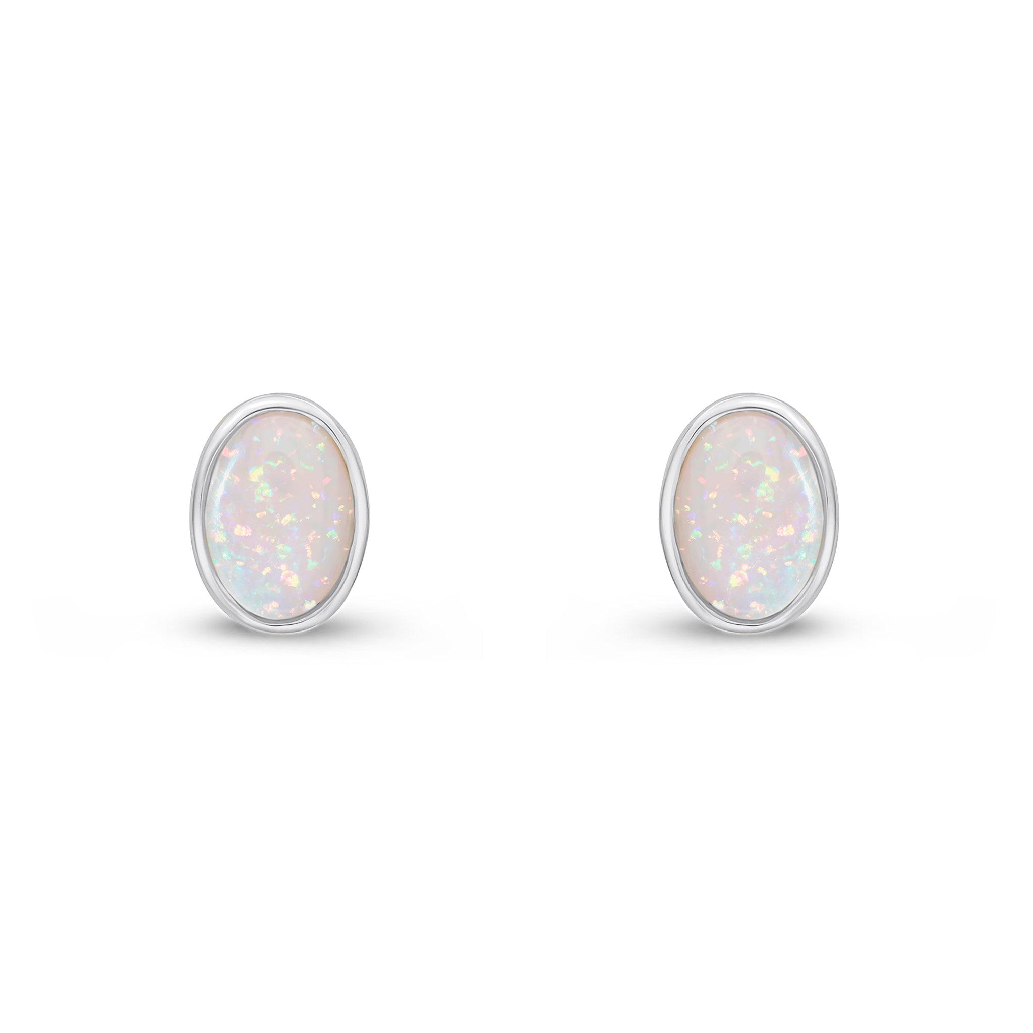9CT White Gold Oval Opal Rubover Stud Earrings 7x5mm