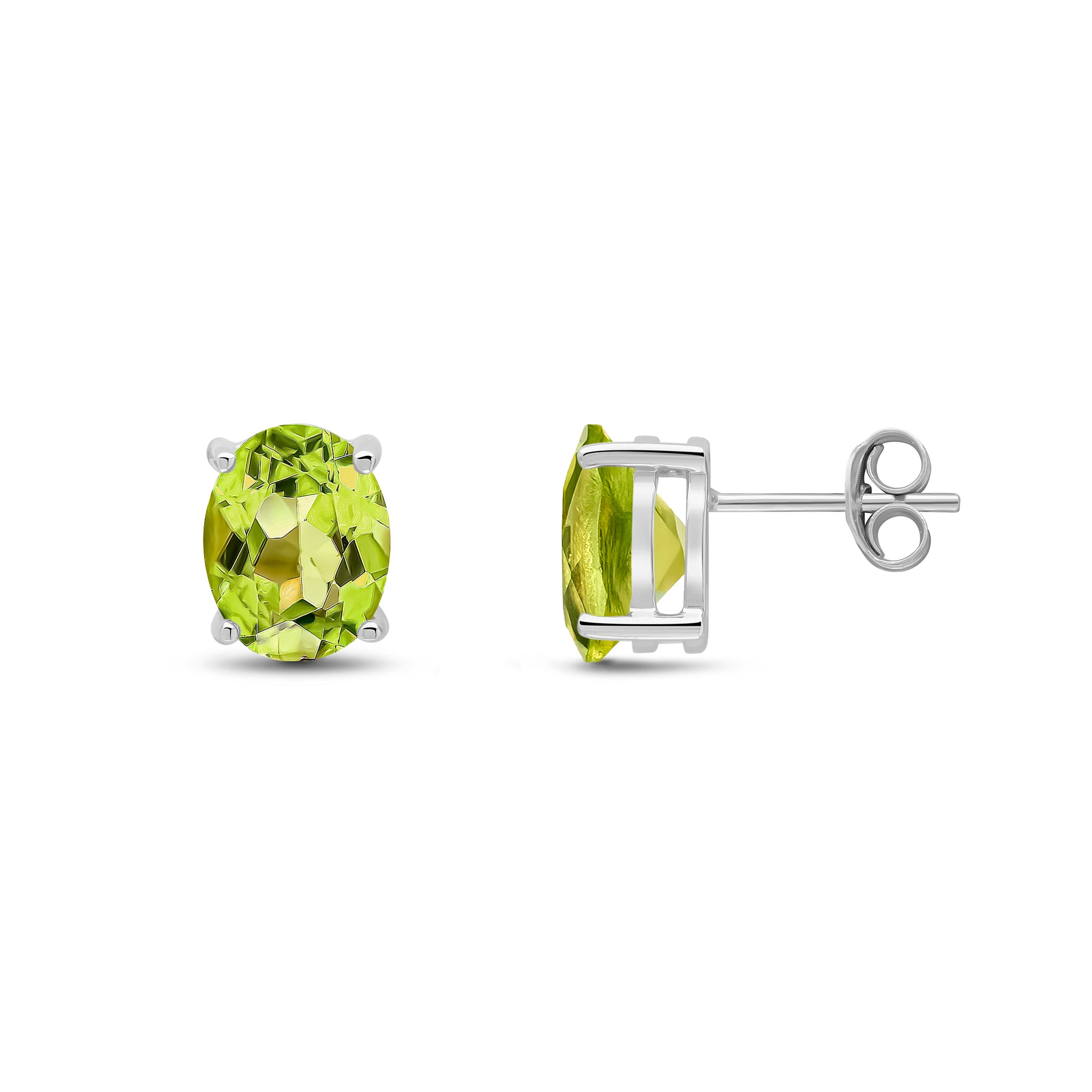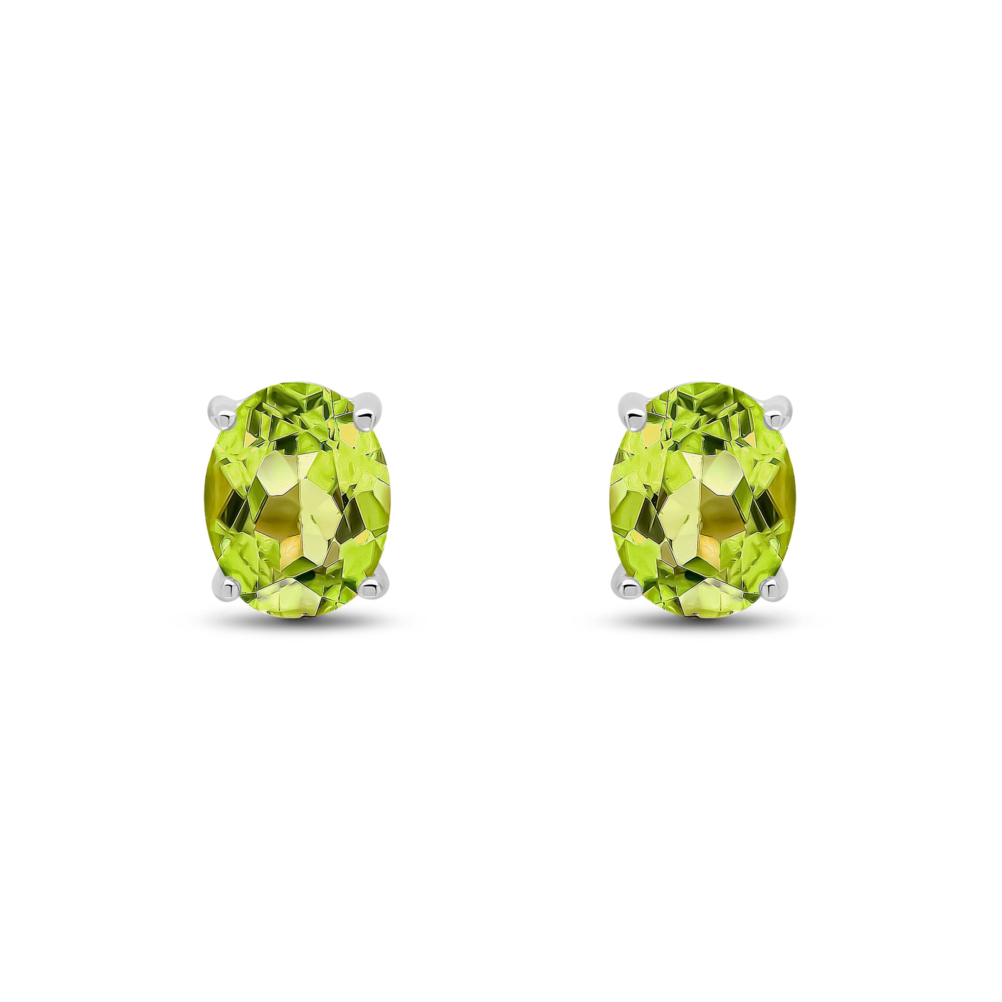 9CT White Gold Oval Peridot Claw Stud Earrings 9x7mm