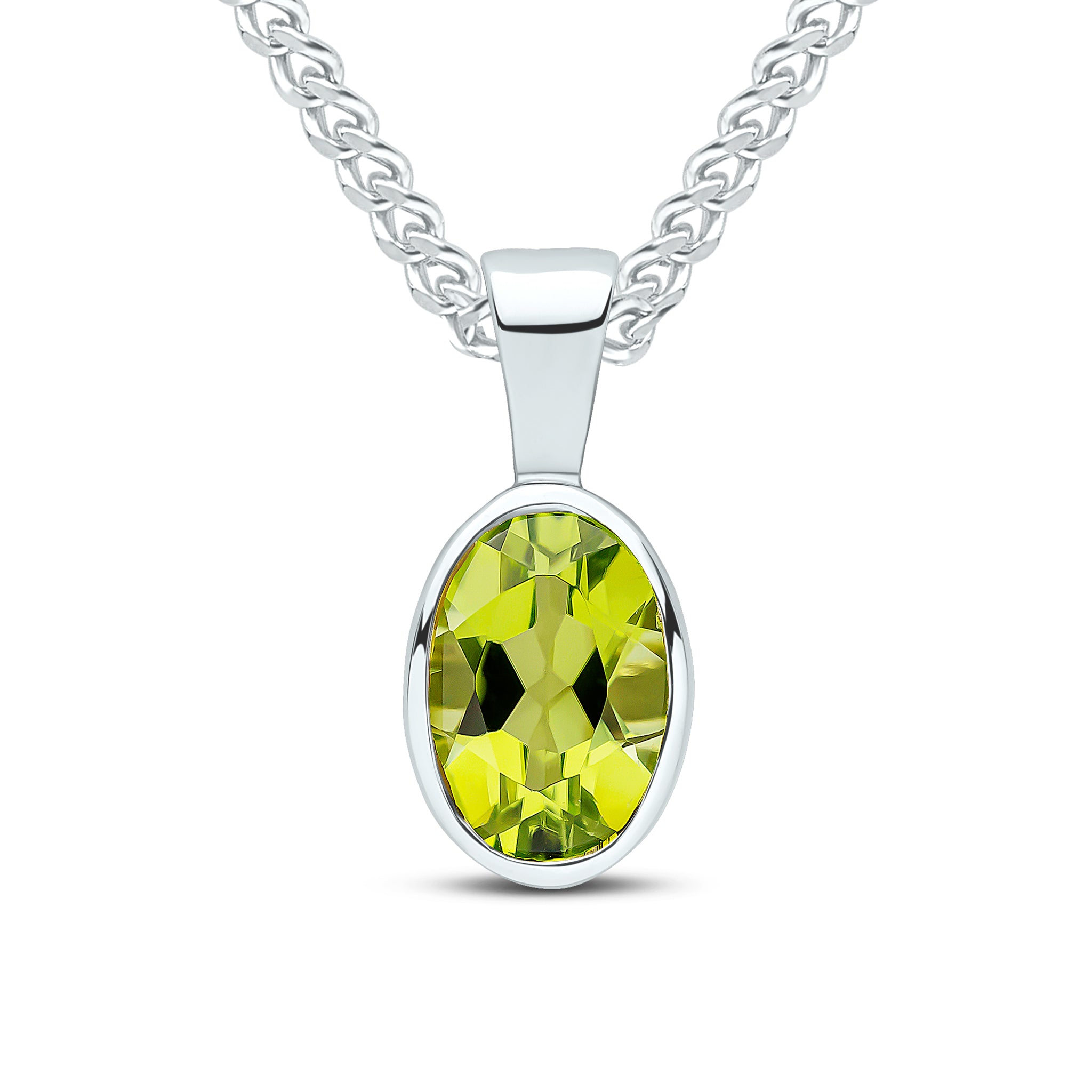 9CT White Gold Oval Peridot Rubover Pendant 7x5mm