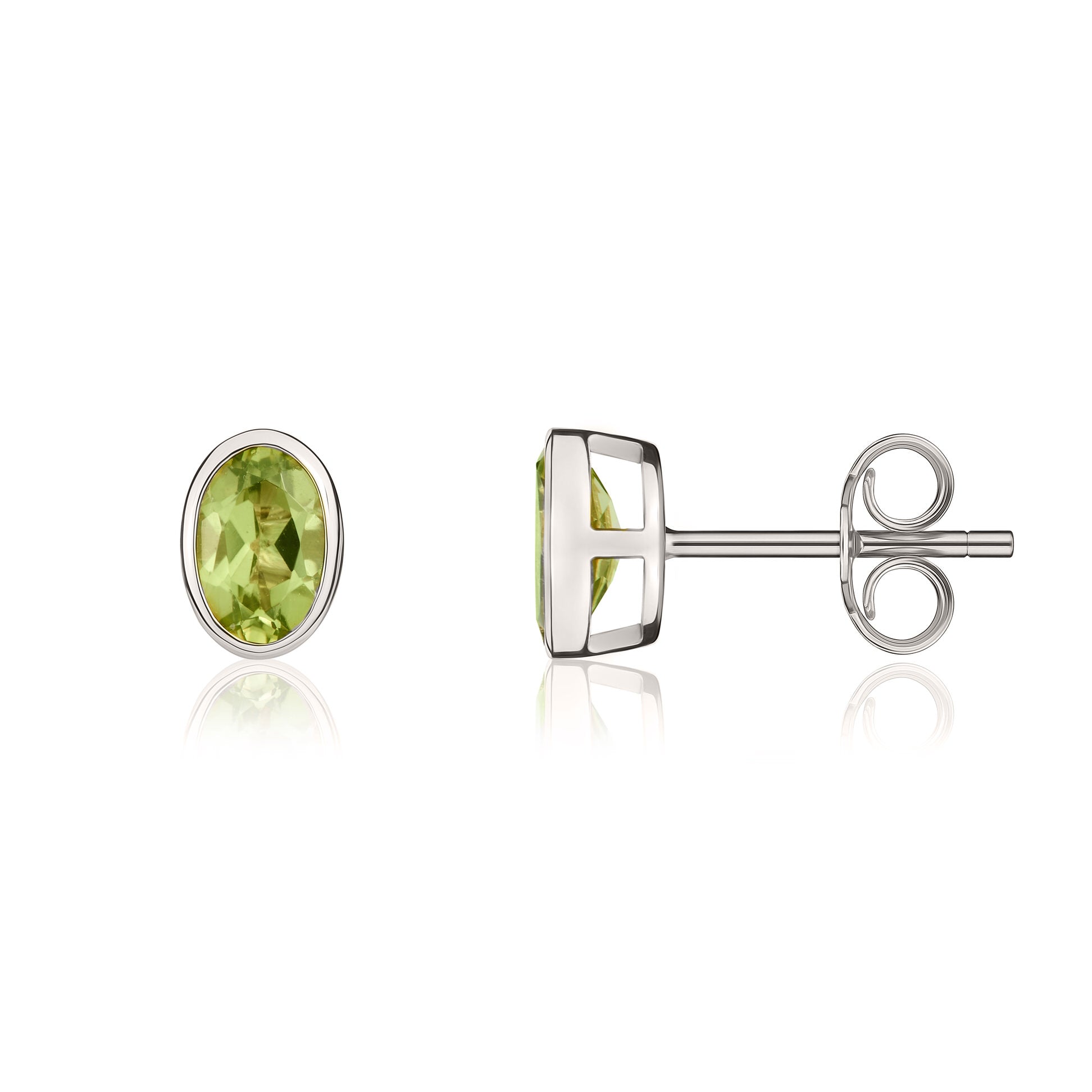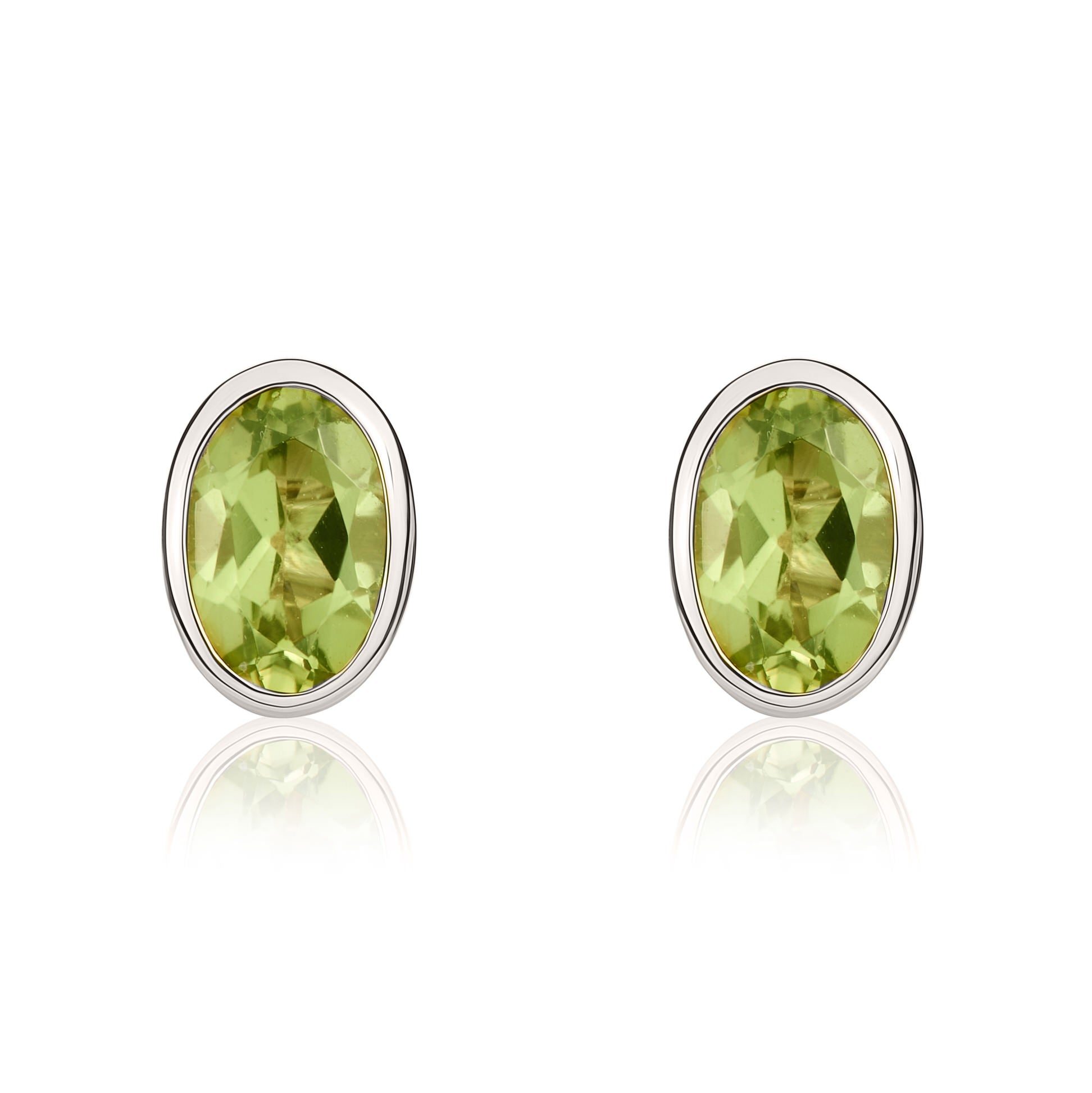 9CT White Gold Oval Peridot Rubover Stud Earrings 6x4mm