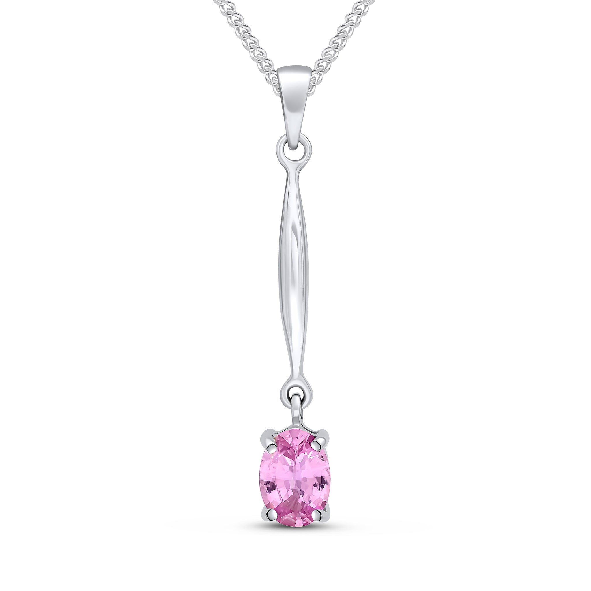 9CT White Gold Oval Pink Sapphire Claw Bar Drop Pendant 7x5mm