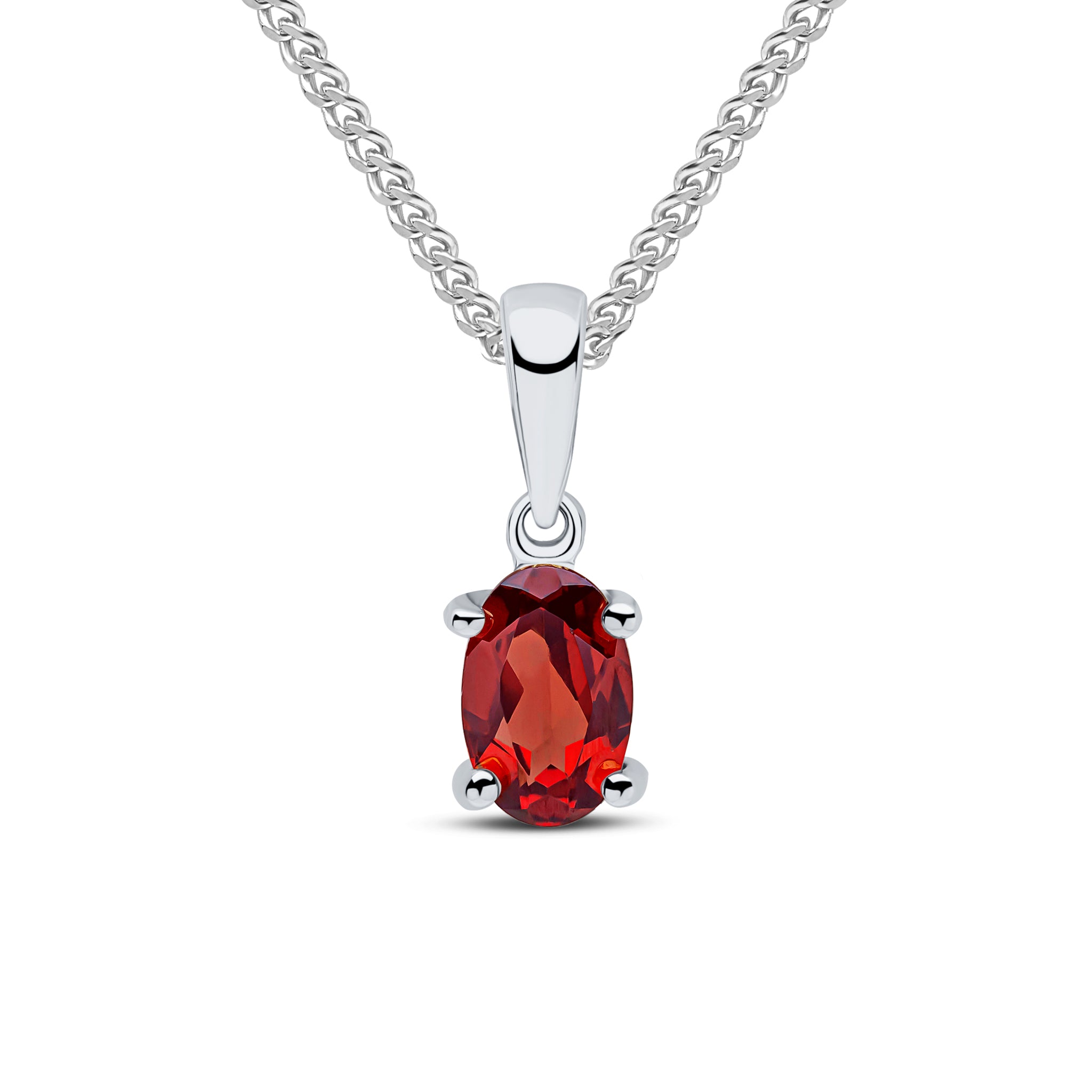 9CT White Gold Oval Garnet Claw Pendant 6x4mm