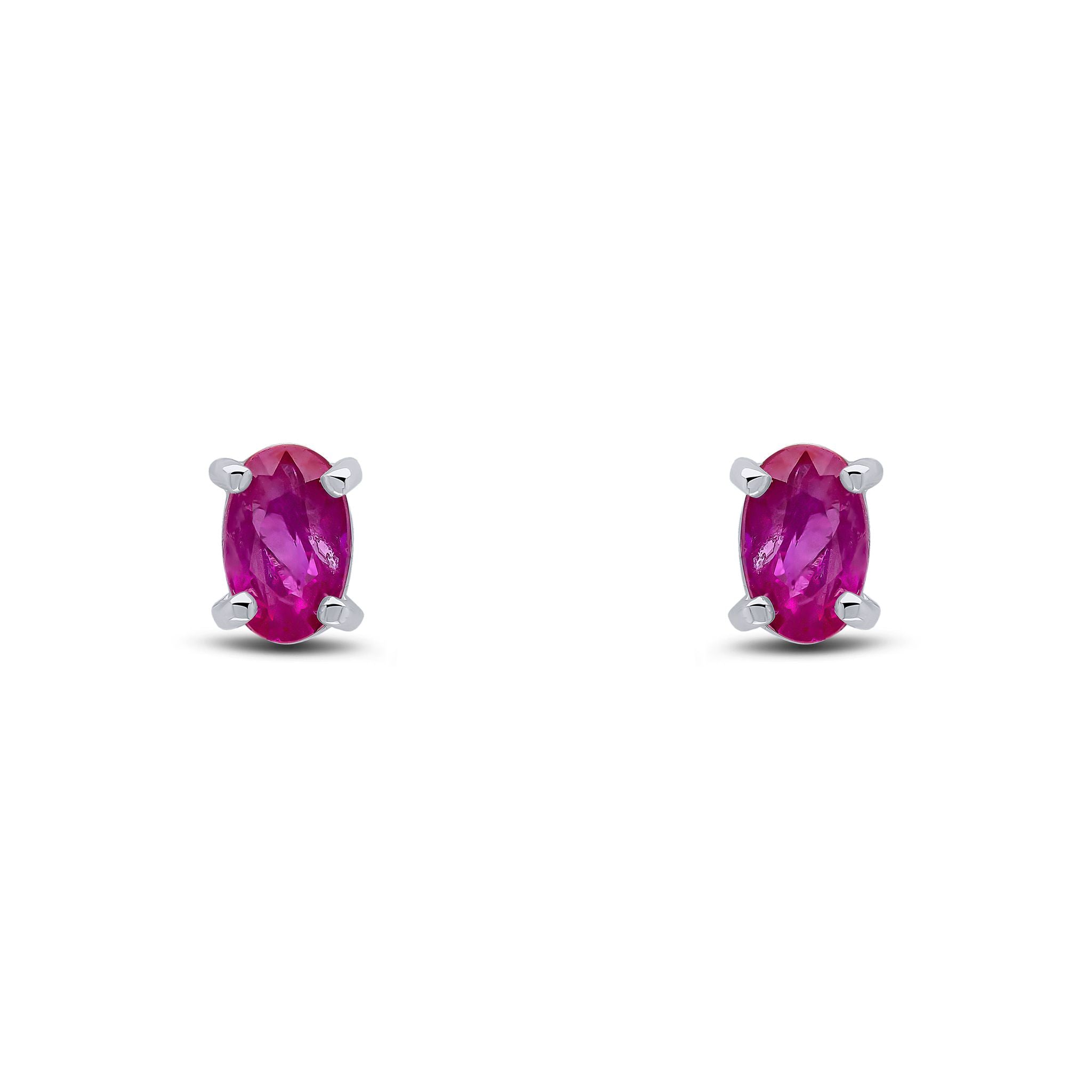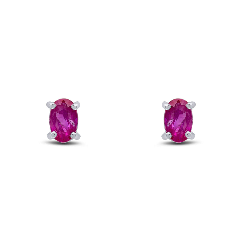 9CT White Gold Oval Ruby Claw Stud Earrings 5x3mm