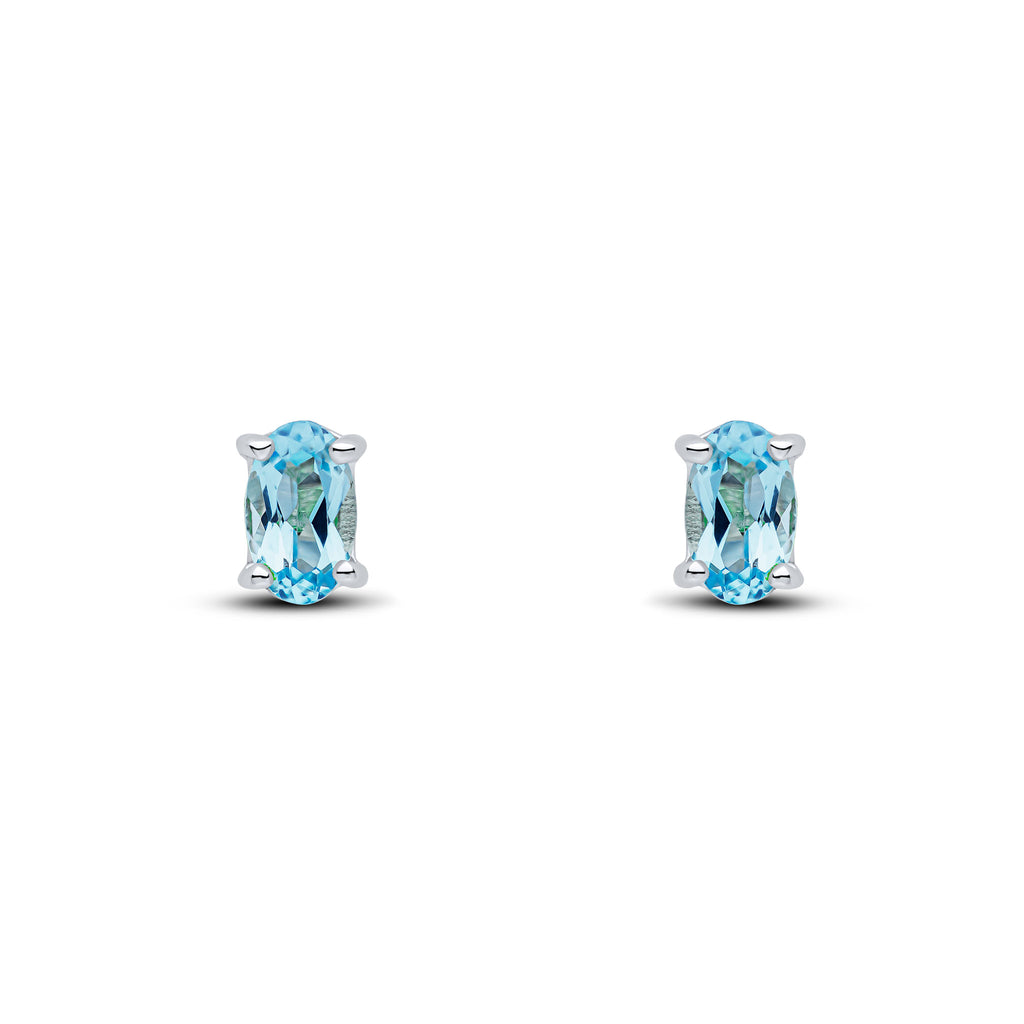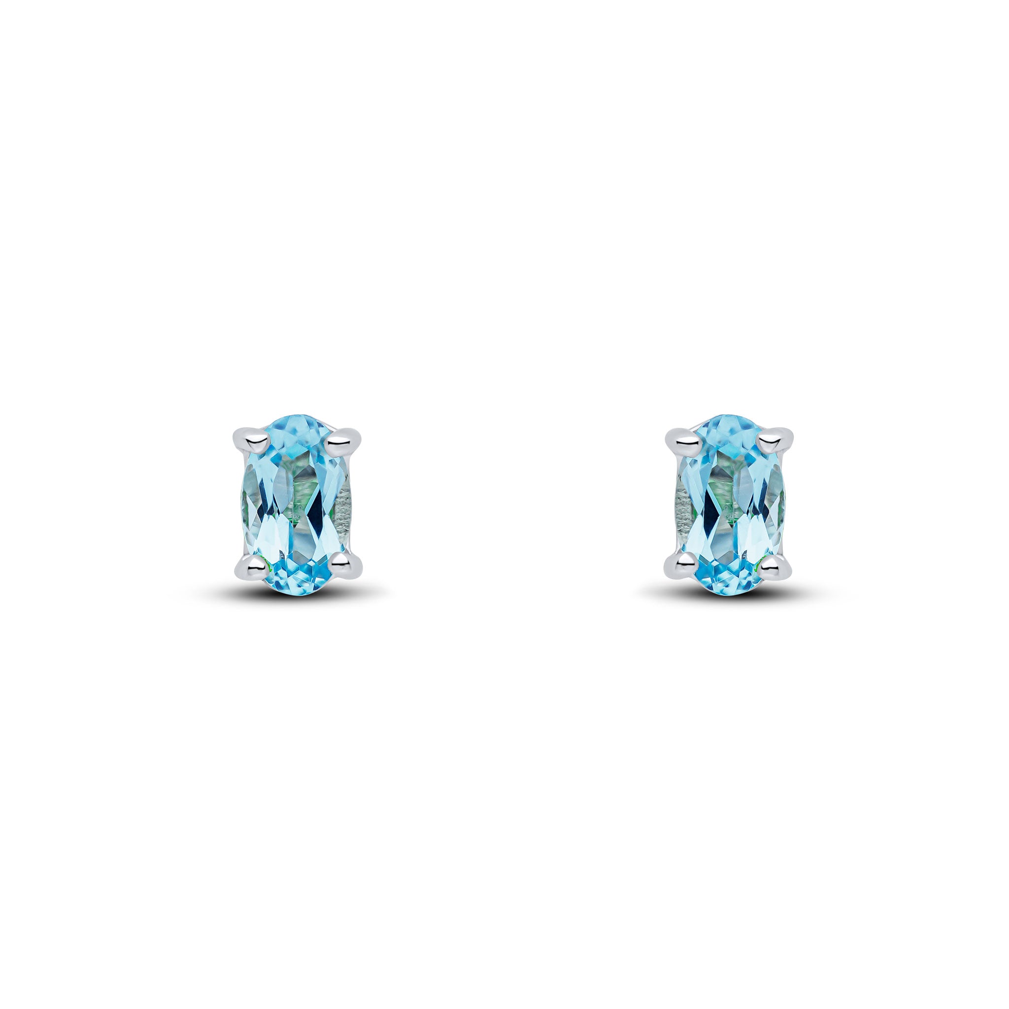 9CT White Gold Oval Swiss Blue Topaz Claw Stud Earrings 5x3mm