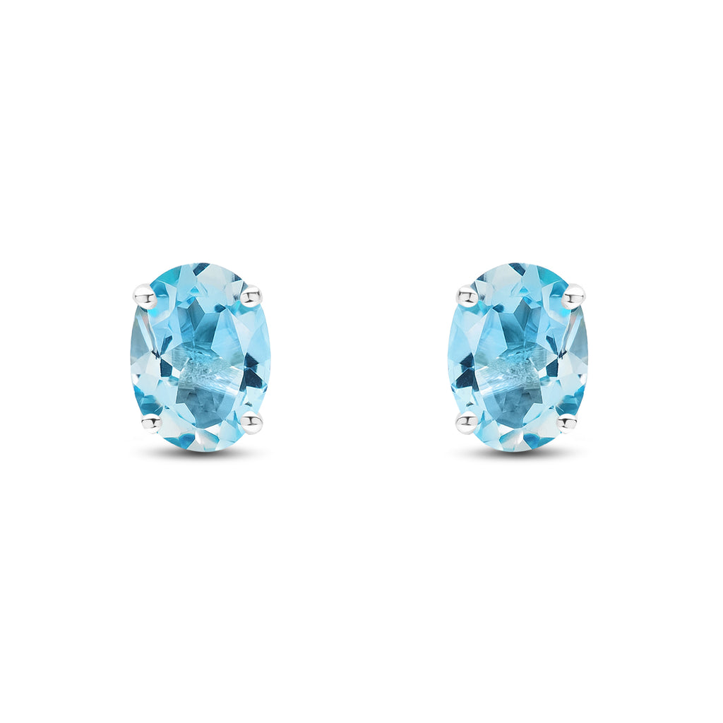 9CT White Gold Oval Swiss Blue Topaz Claw Stud Earrings 8x6mm