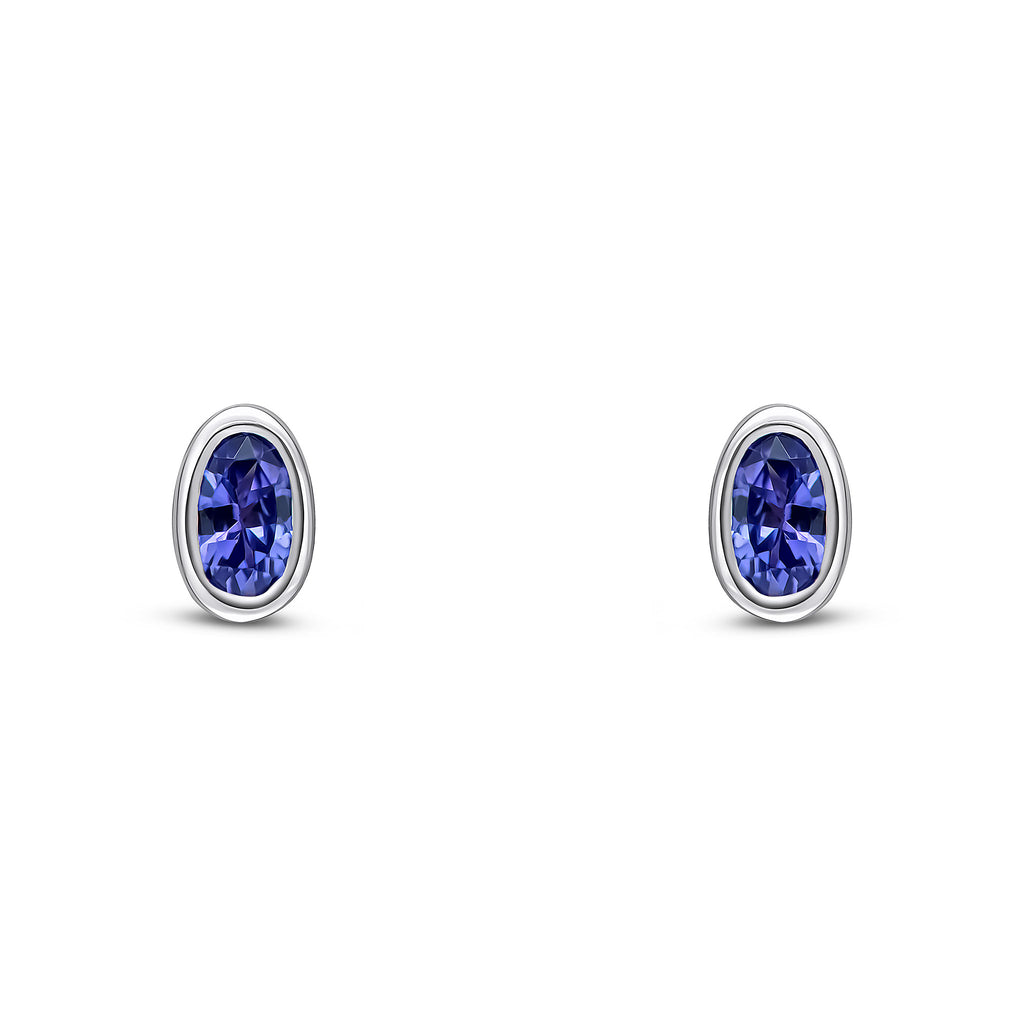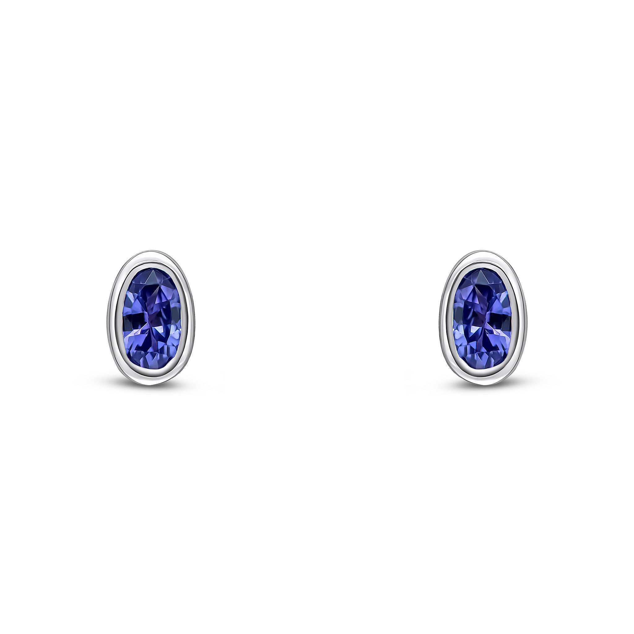 9CT White Gold Oval Tanzanite Rubover Stud Earrings 5x3mm