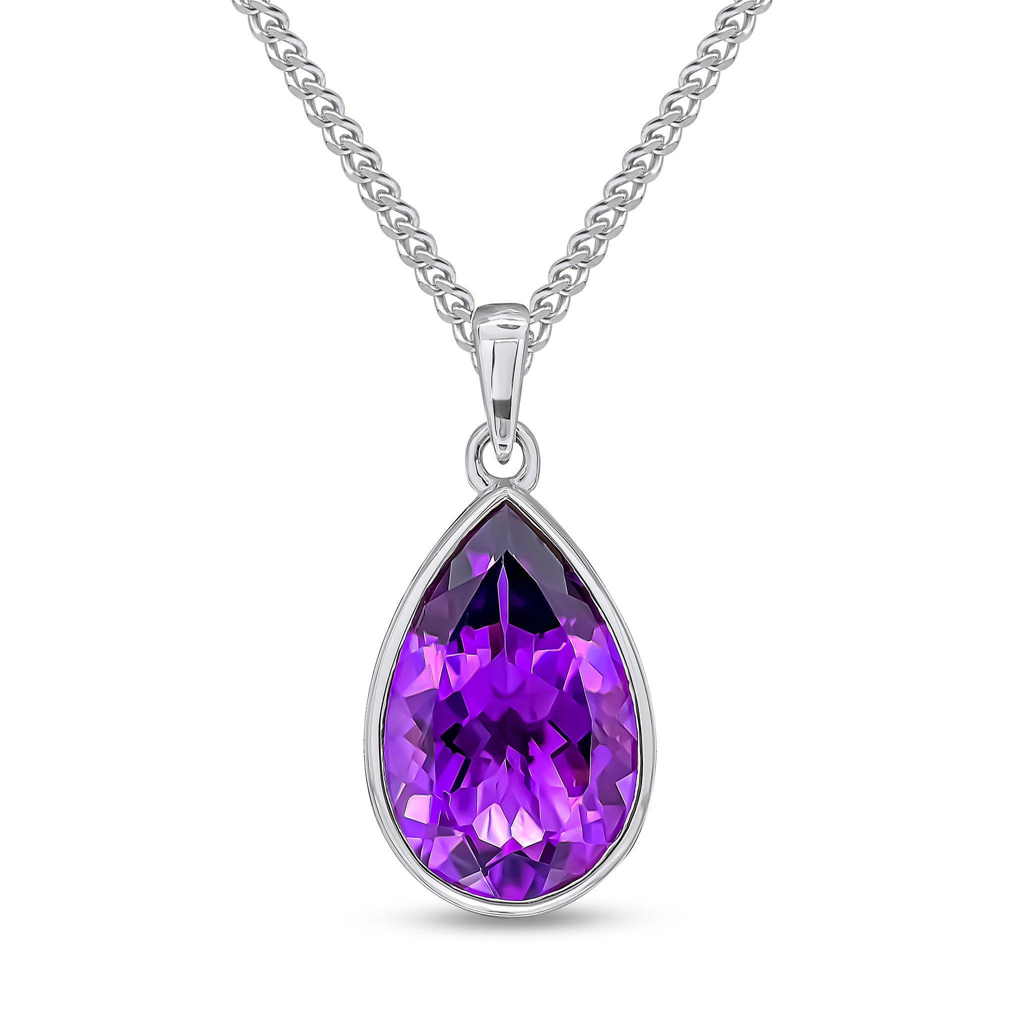 9CT White Gold Pear Shaped Amethyst Rubover Pendant 14x9mm