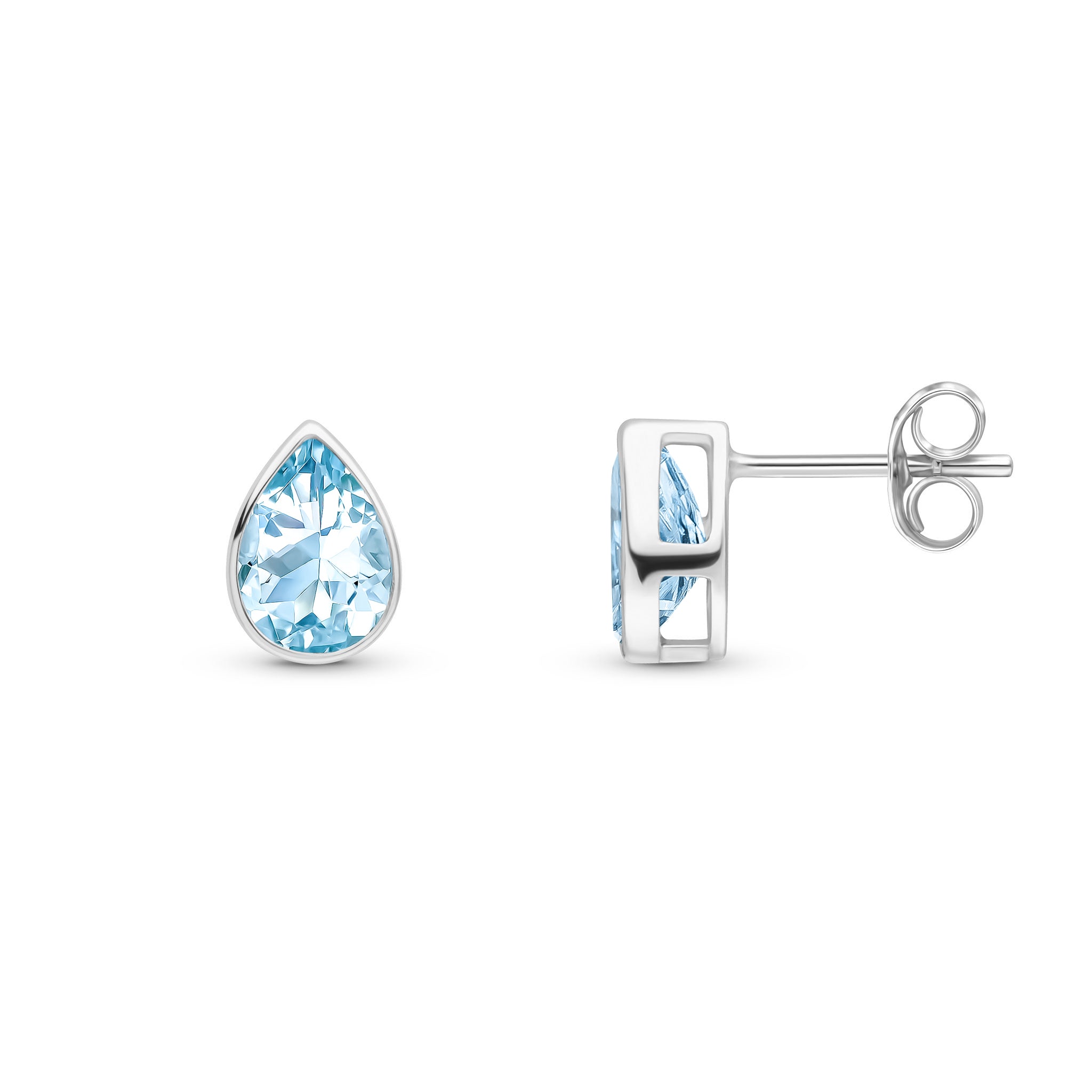 9CT White Gold Pear Shaped Aquamarine Rubover Stud Earrings 7x5mm