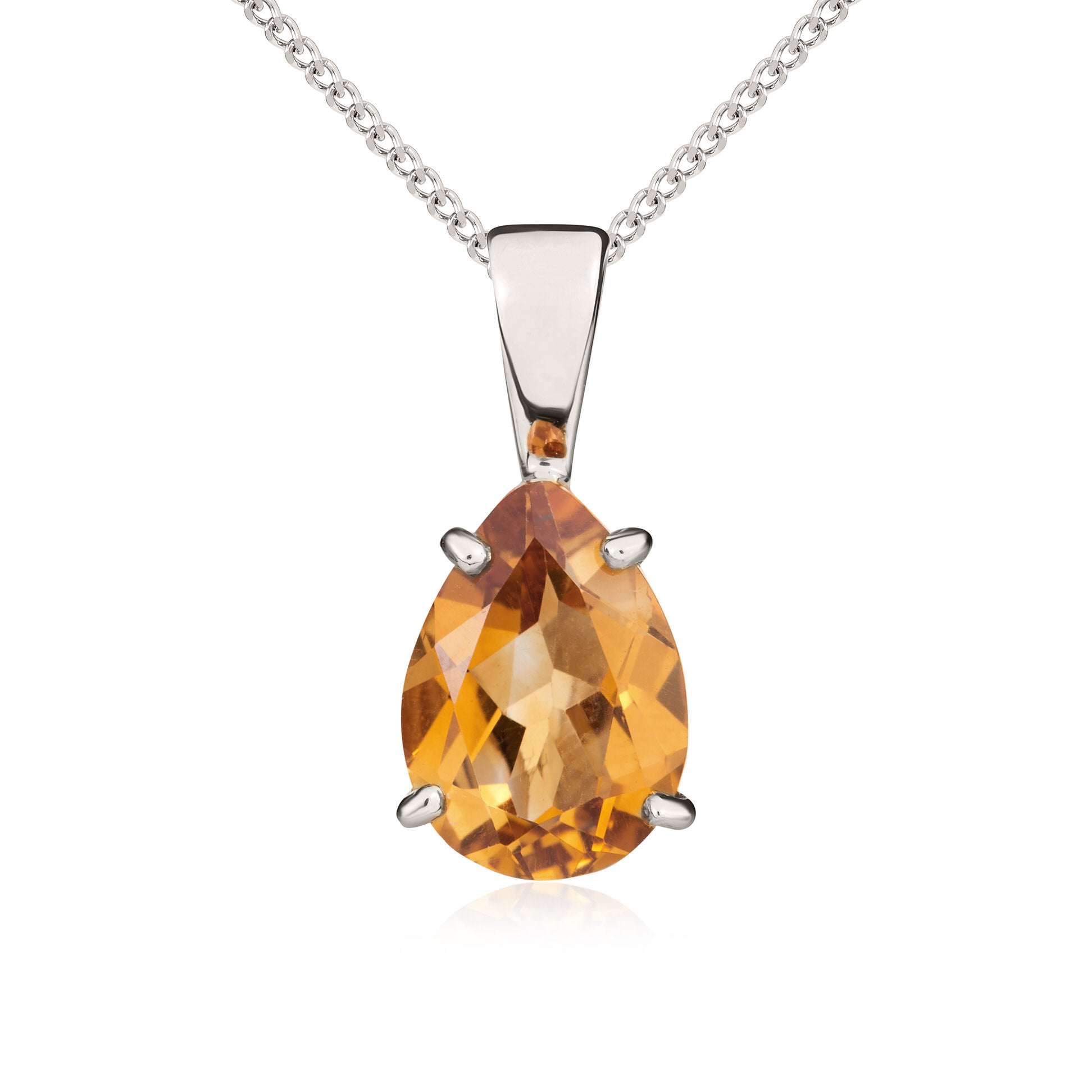 9CT White Gold Pear Shaped Citrine Claw Pendant 10x7mm