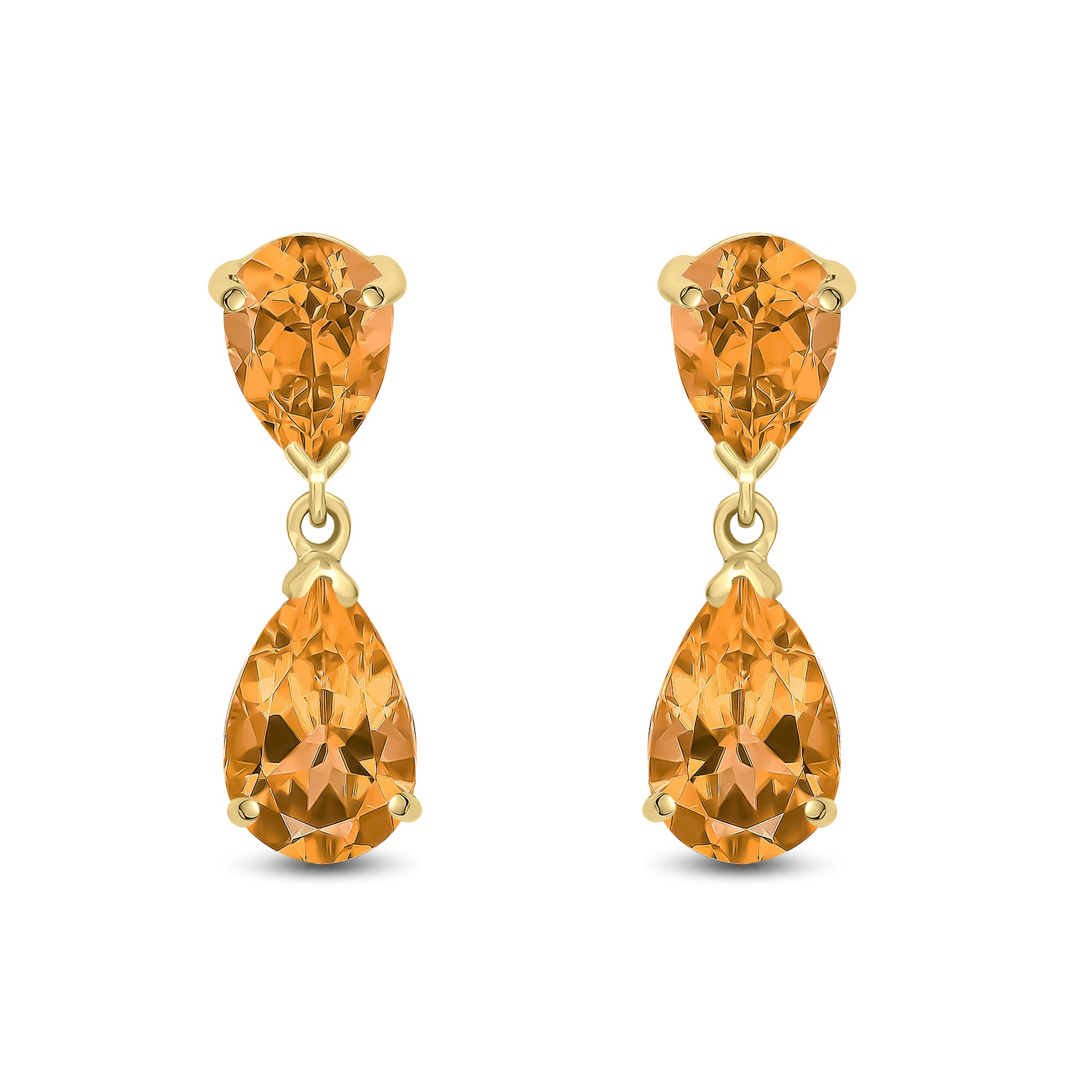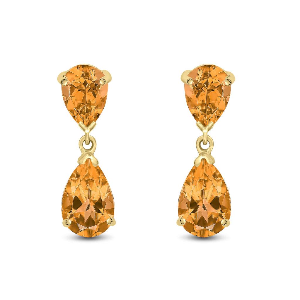 9CT White Gold Pear Shaped Citrine Double Stone Drop Earrings