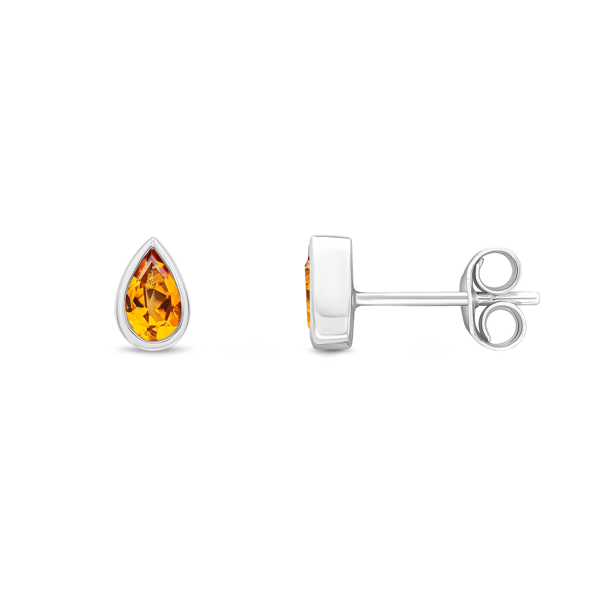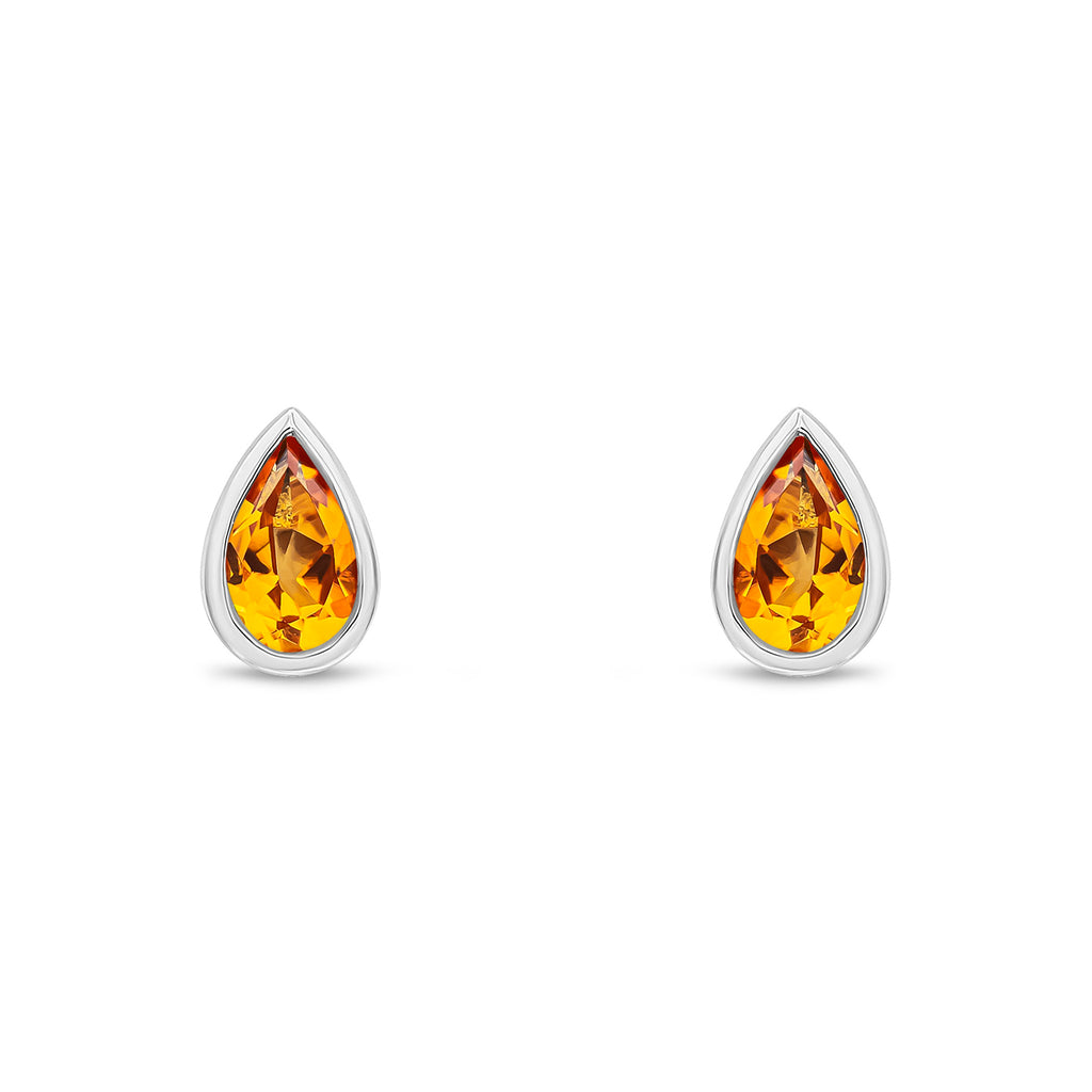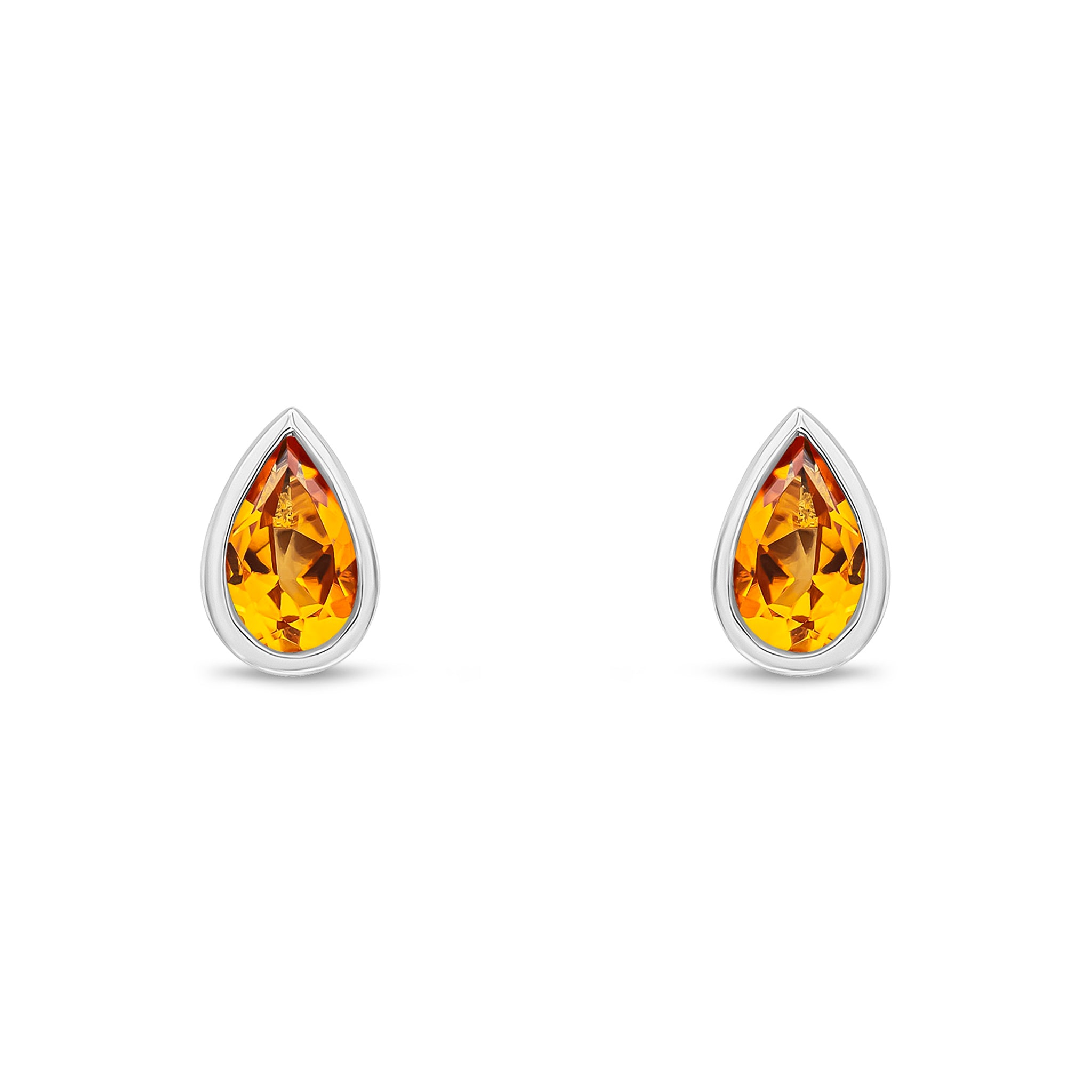 9CT White Gold Pear Shaped Citrine Rubover Stud Earrings 5x3mm