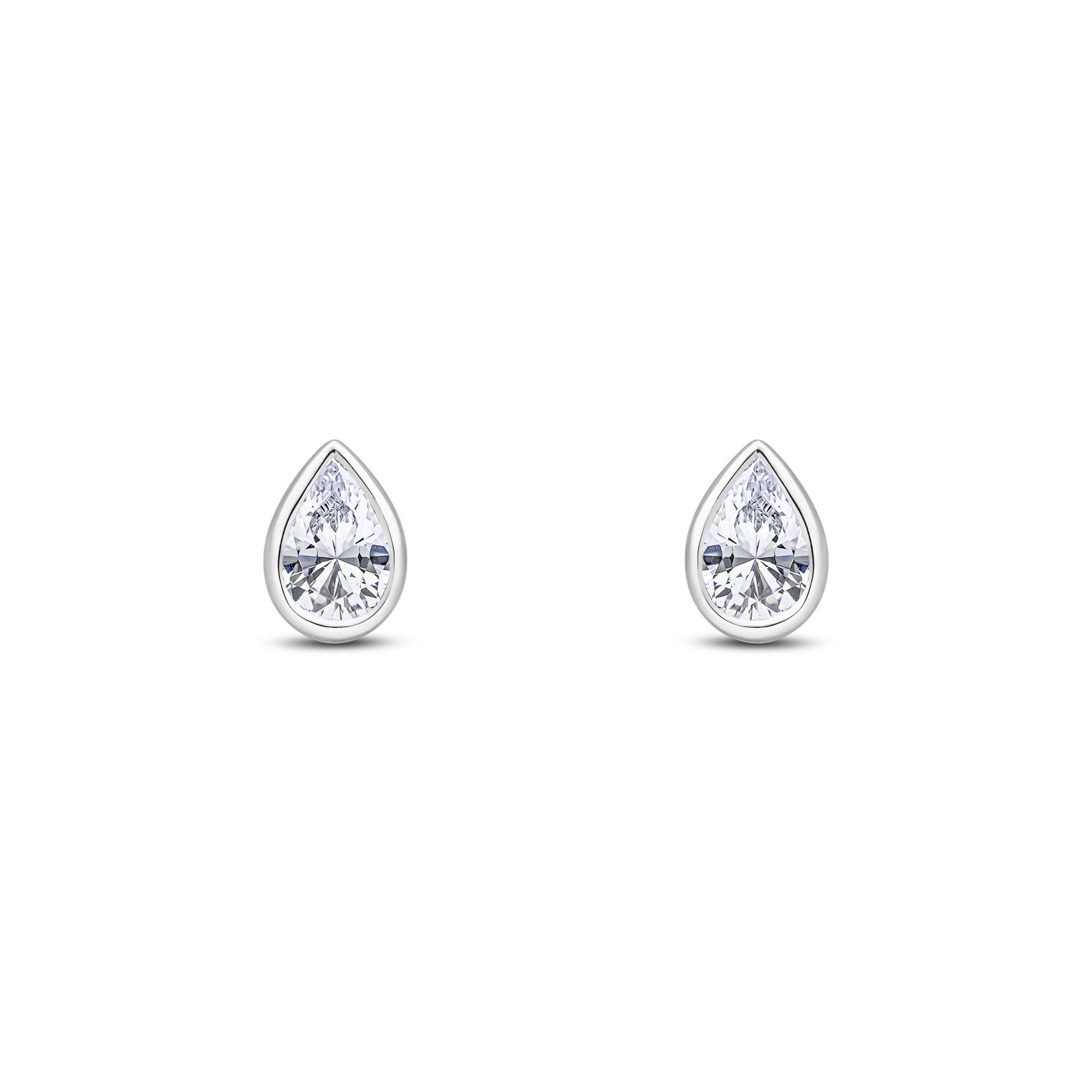 9CT White Gold Pear Shaped Cubic Zirconia CZ Rubover Stud Earrings 6x4mm