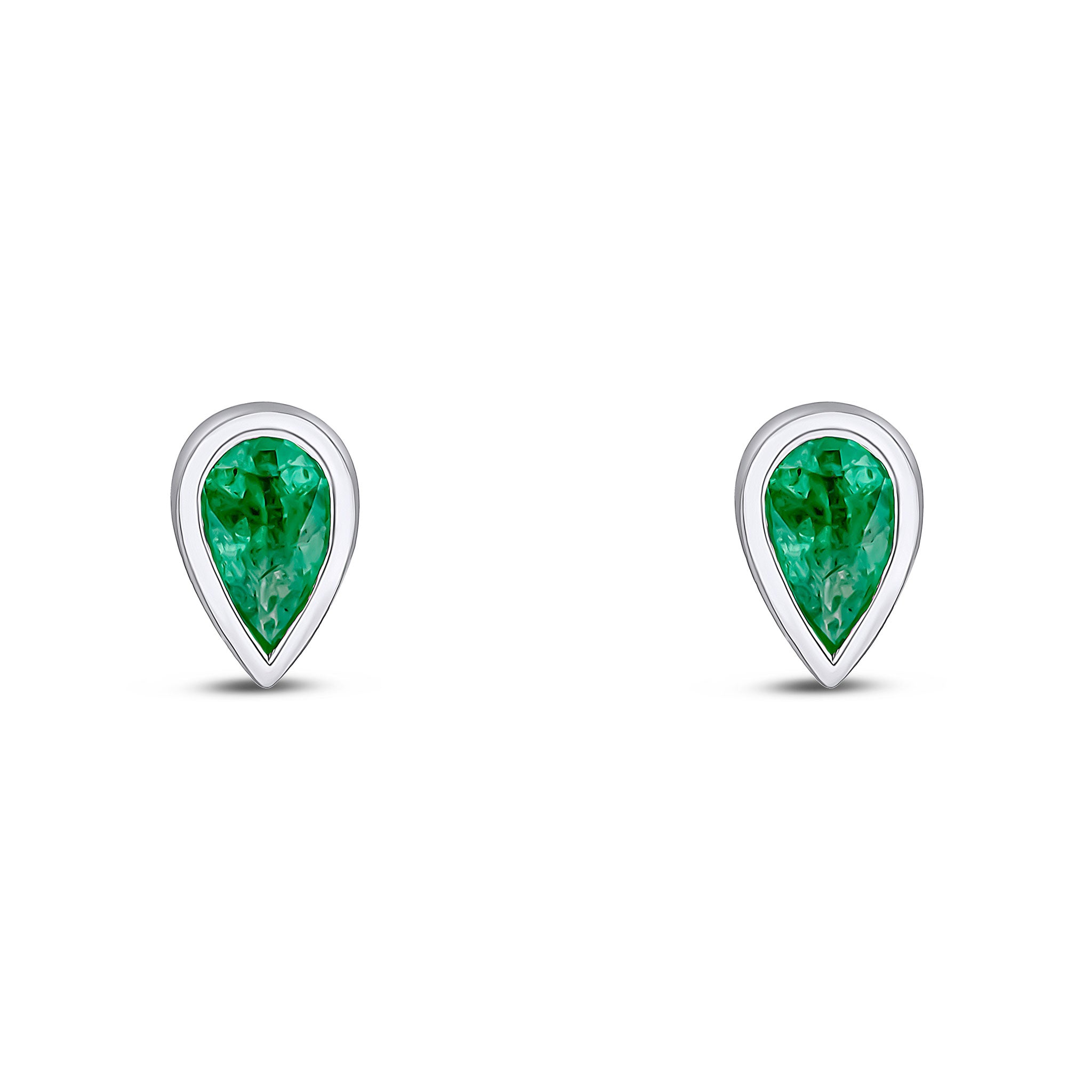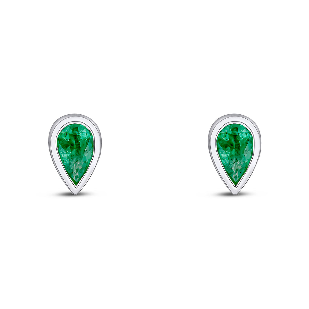 9CT White Gold Pear Shaped Emerald Rubover Stud Earrings 5x3mm