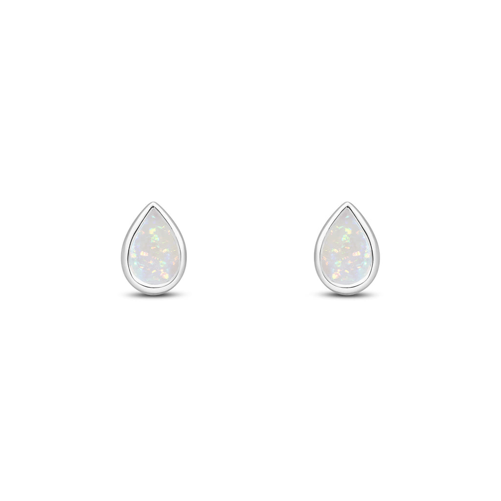 9CT White Gold Pear Shaped Opal Rubover Stud Earrings 6x4mm