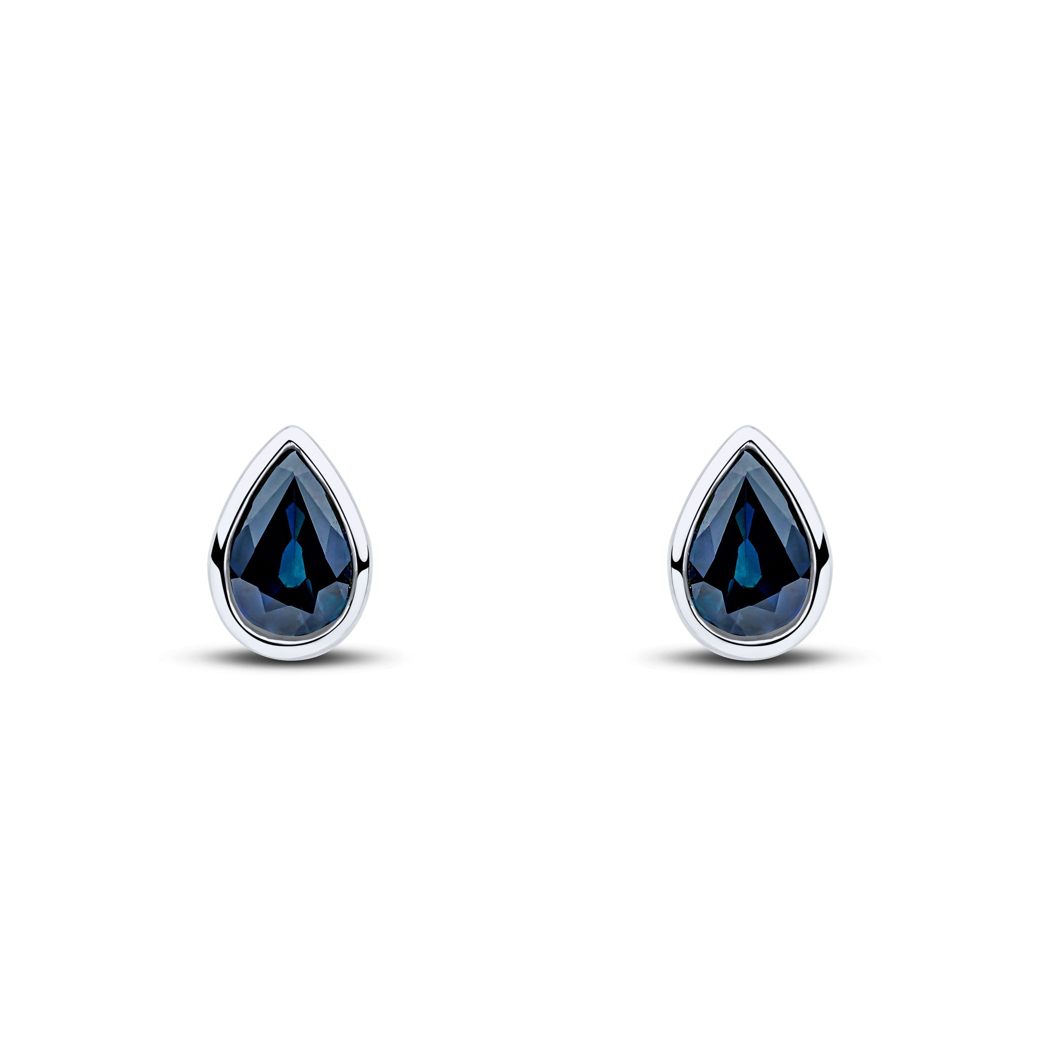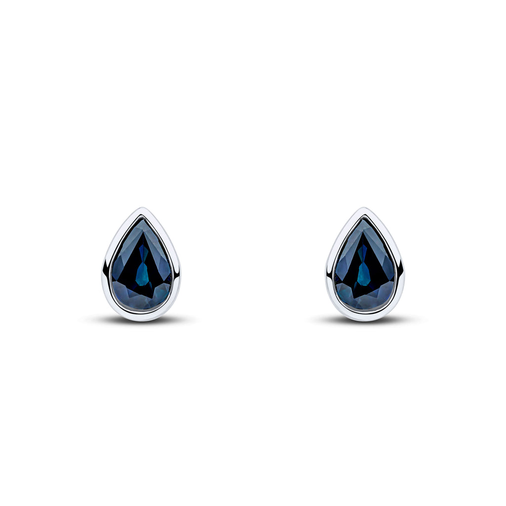 9CT White Gold Pear Shaped Sapphire Rubover Stud Earrings 7x5mm