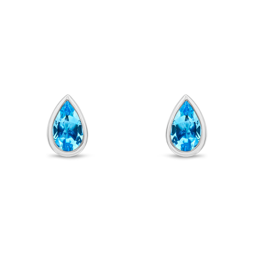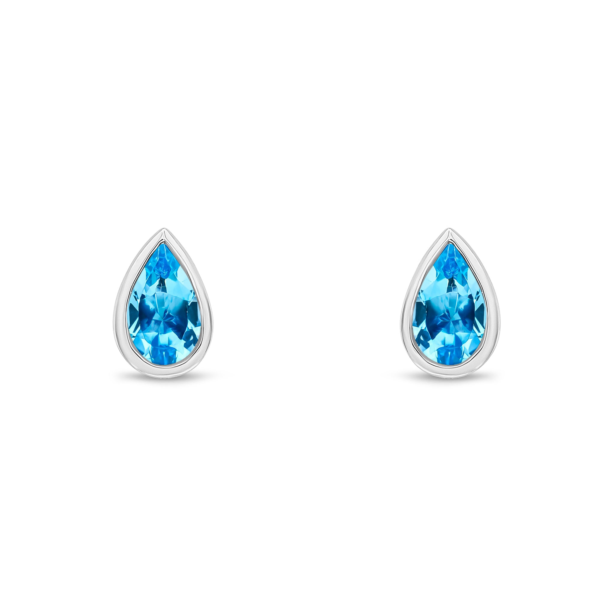 9CT White Gold Pear Shaped Swiss Blue Topaz Rubover Stud Earrings 5x3mm
