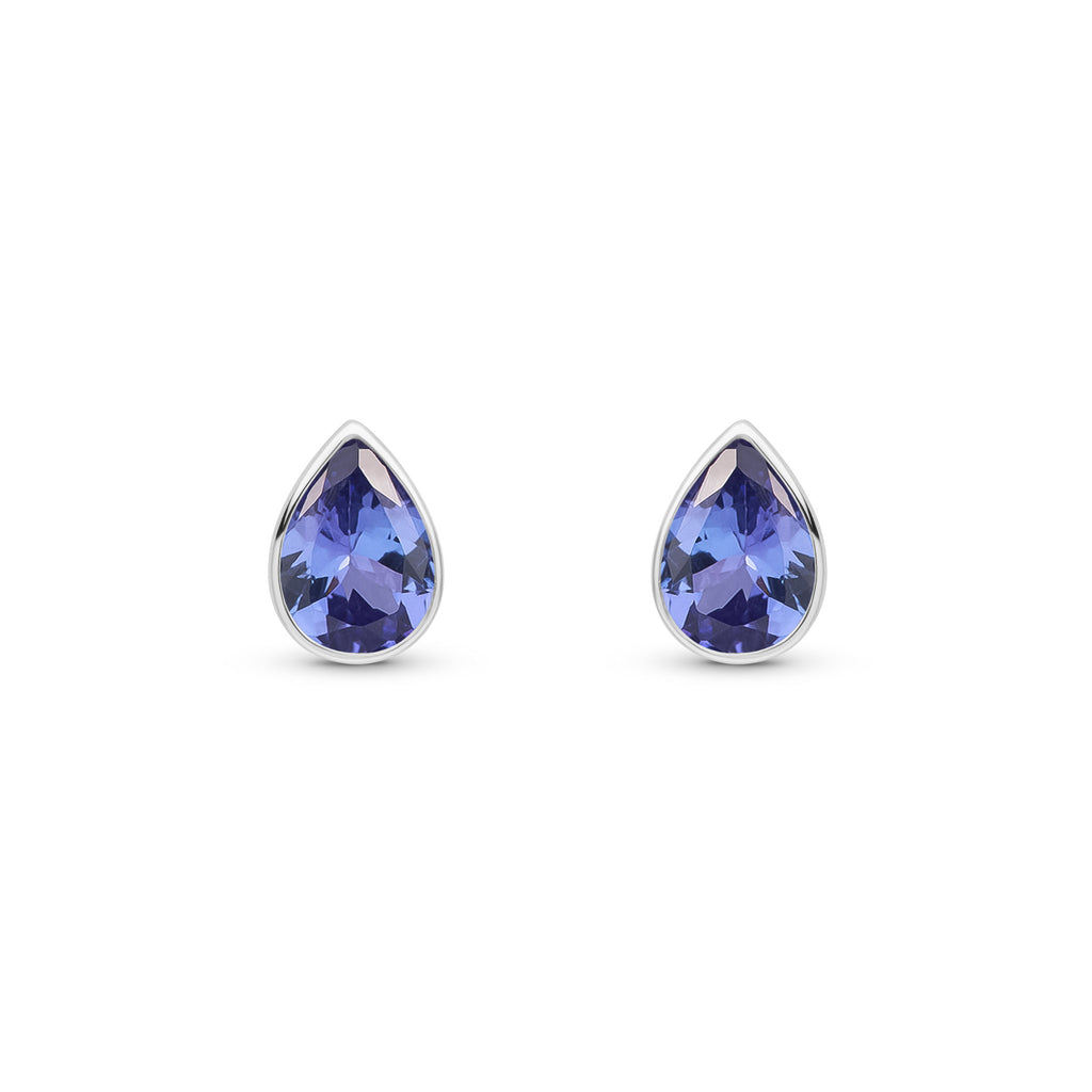 9CT White Gold Pear Shaped Tanzanite Rubover Stud Earrings 7x5mm