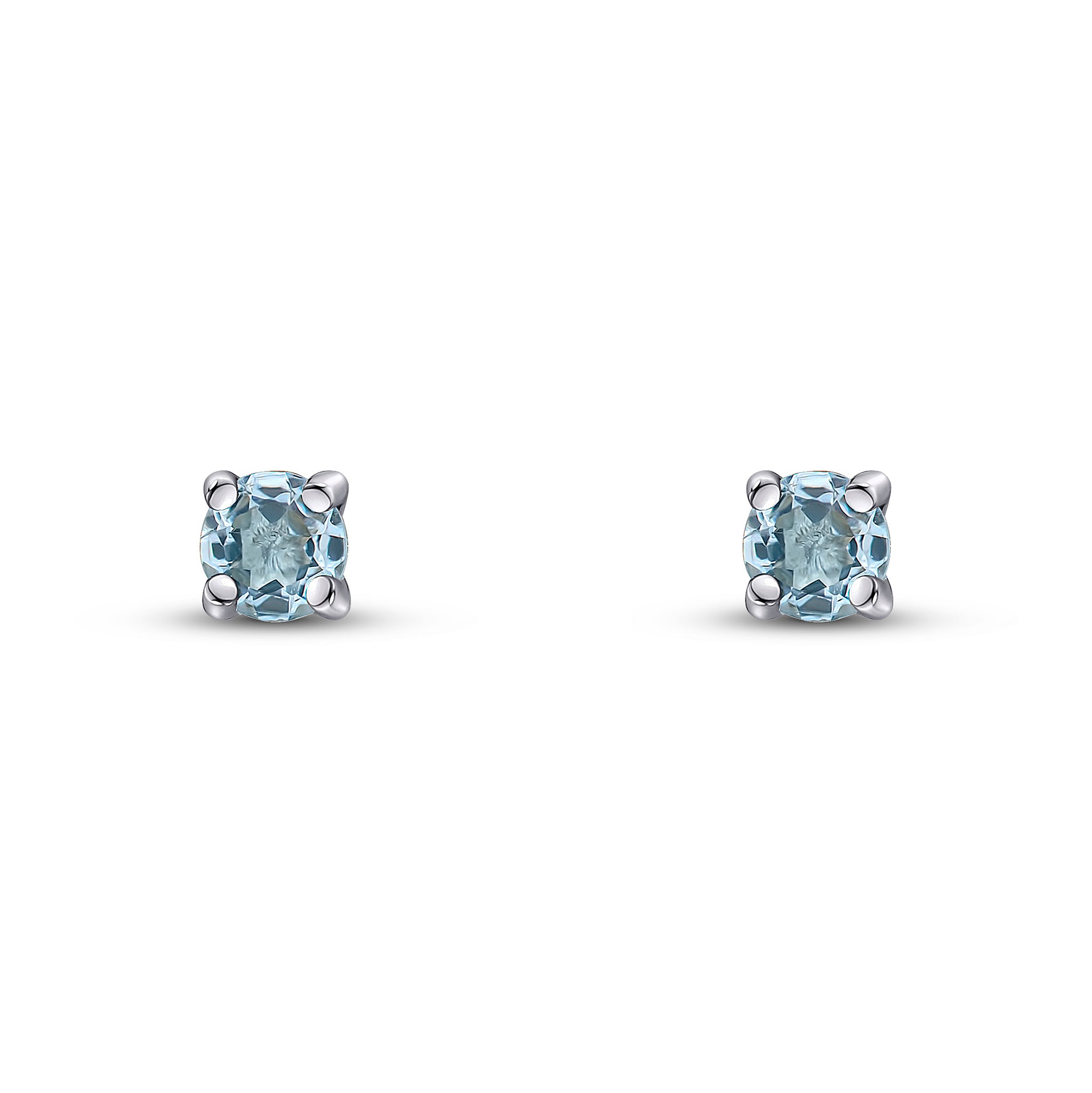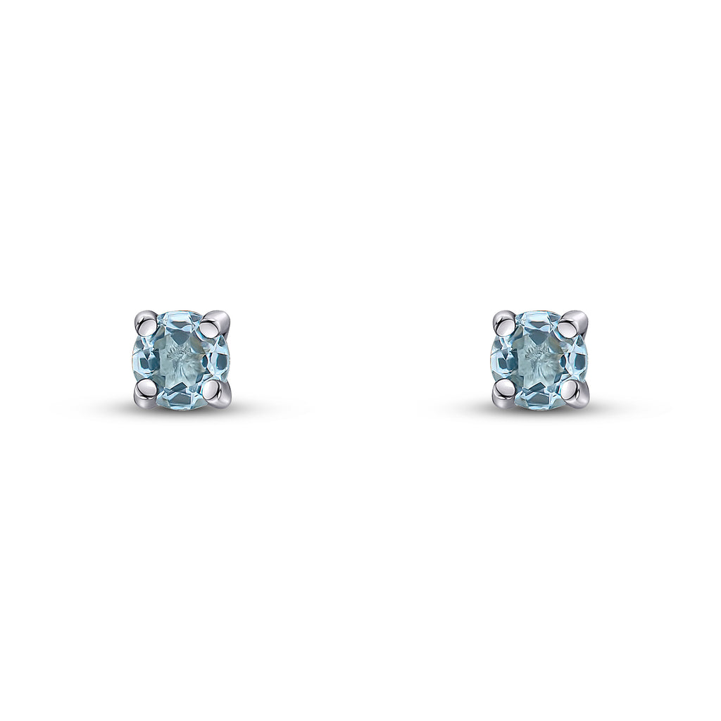 9CT White Gold Round Aquamarine Claw Stud Earrings 3mm