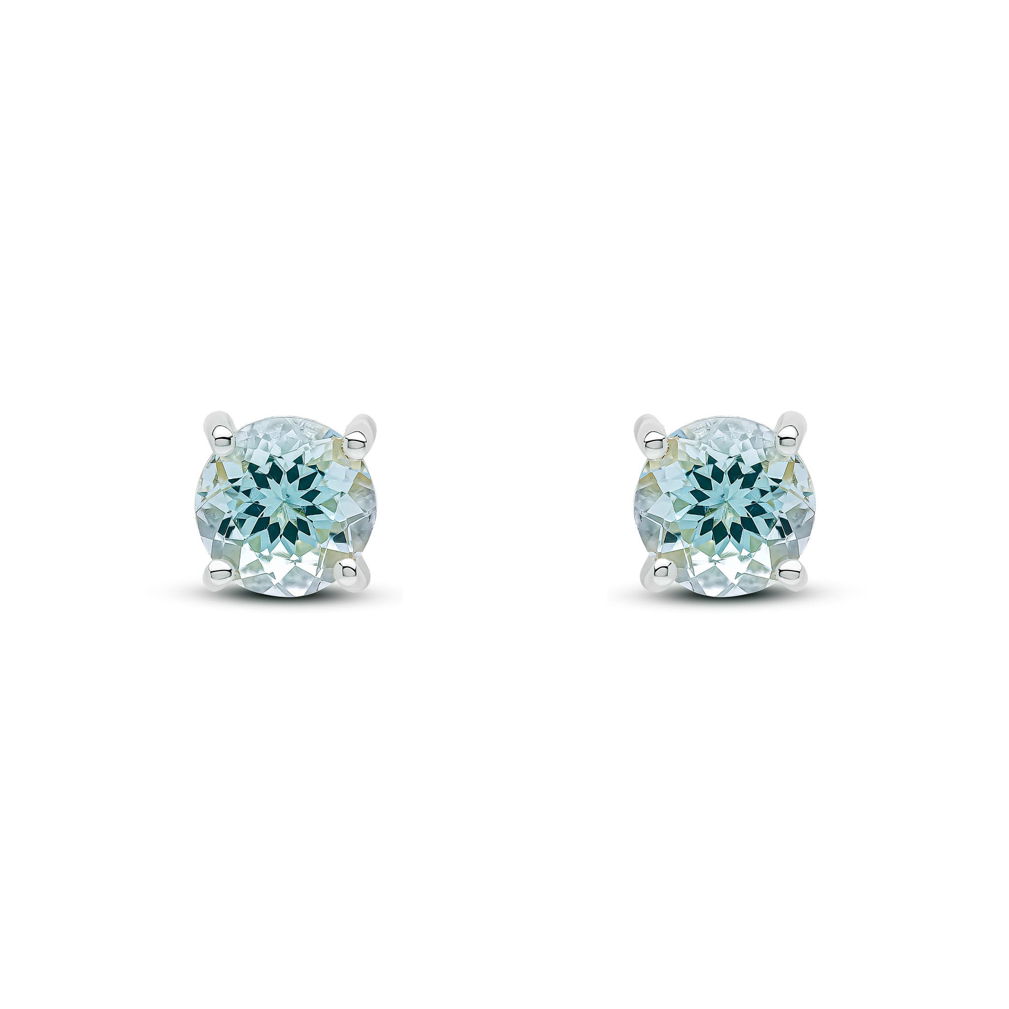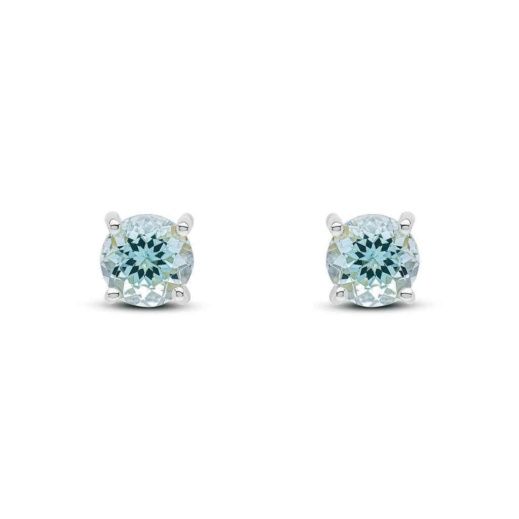 9CT White Gold Round Aquamarine Claw Stud Earrings 6mm