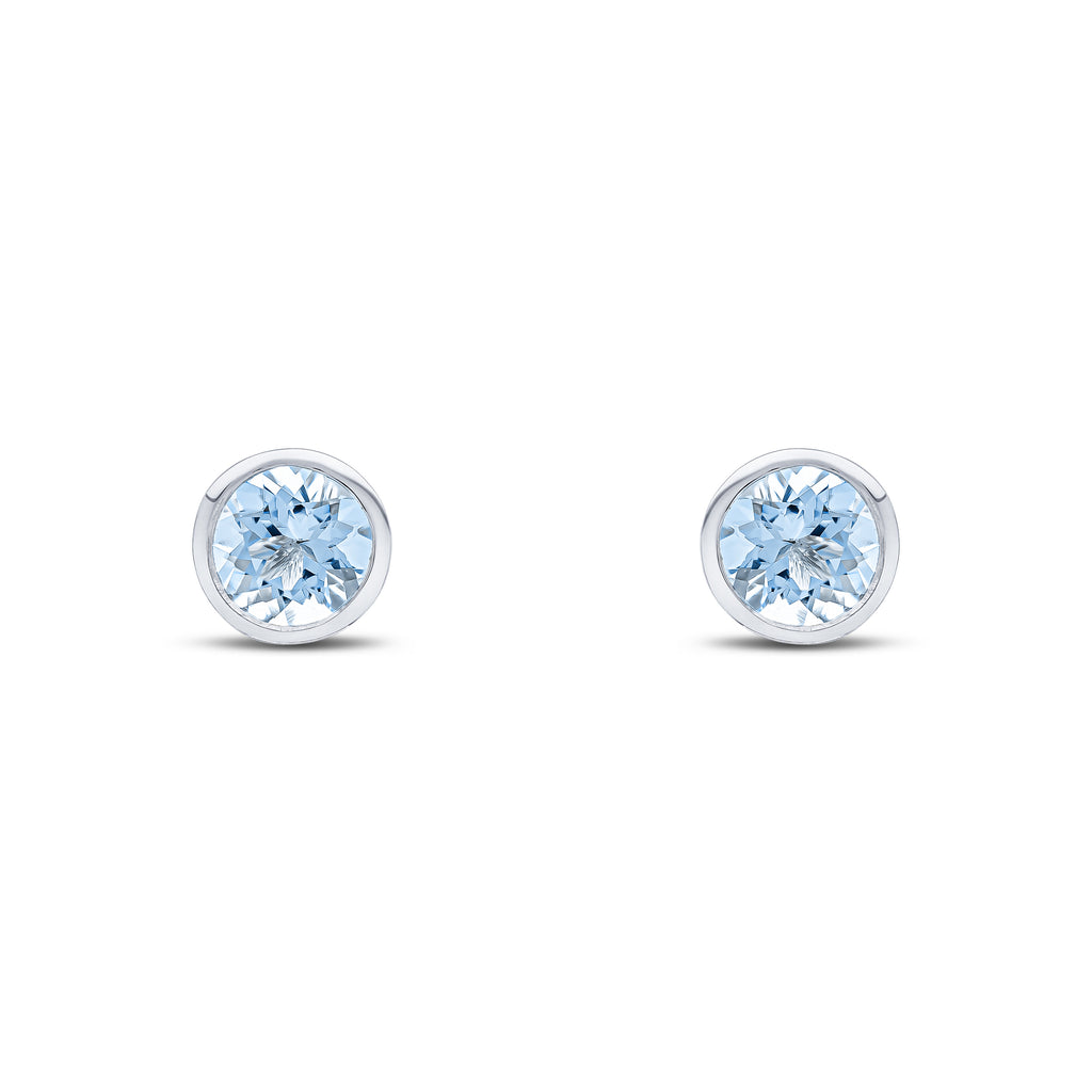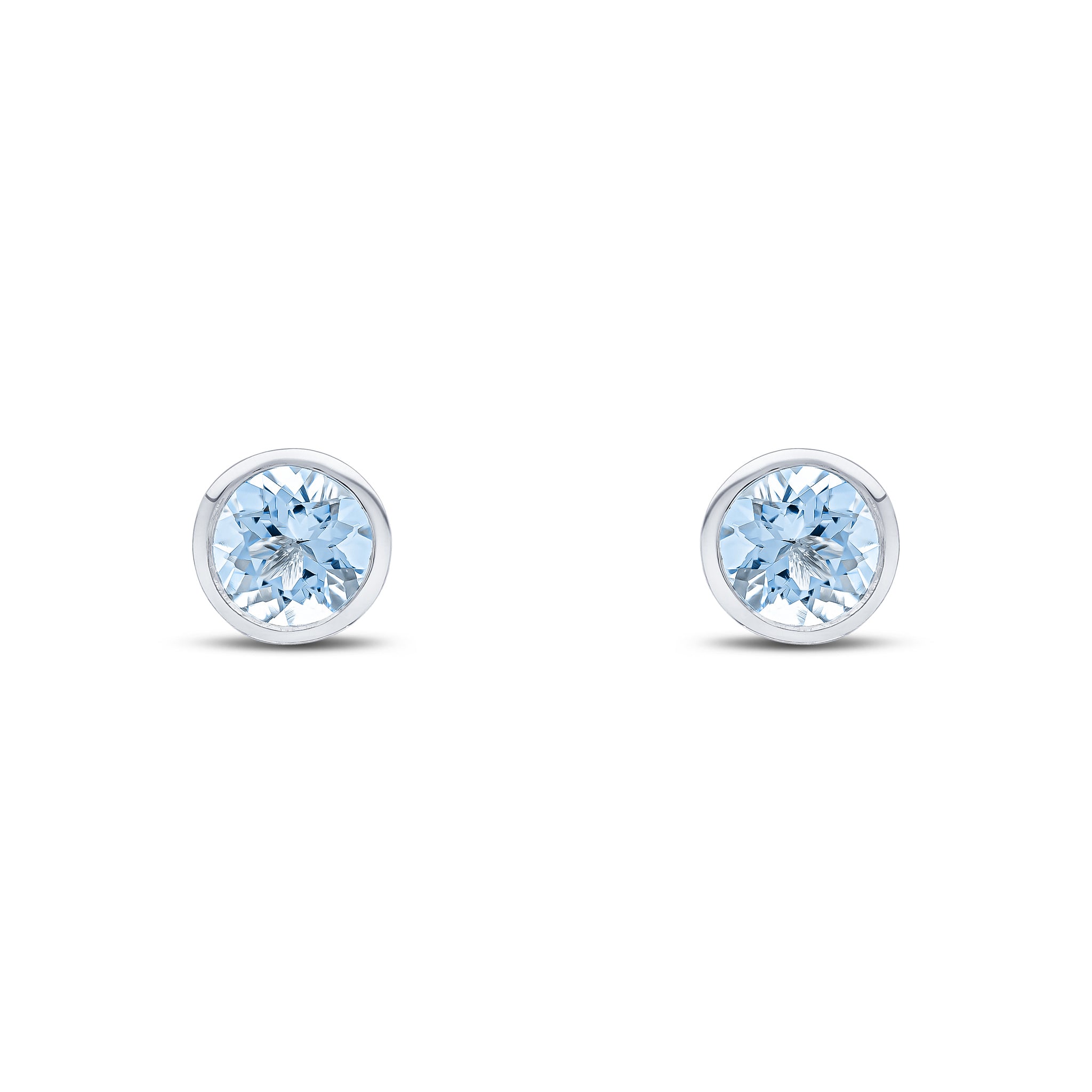 9CT White Gold Round Aquamarine Rubover Stud Earrings 6mm