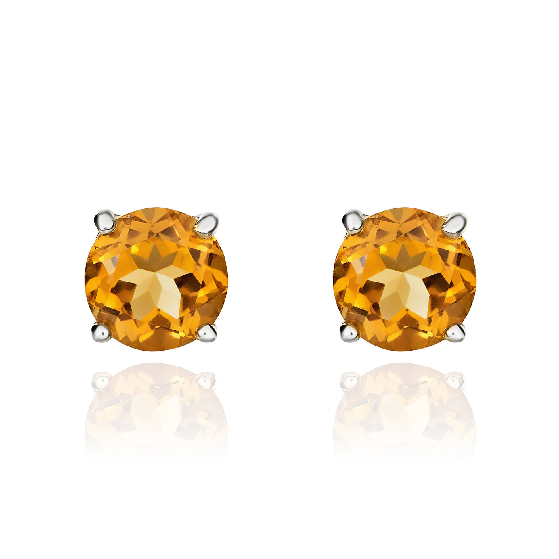 9CT White Gold Round Citrine Claw Stud Earrings 6mm
