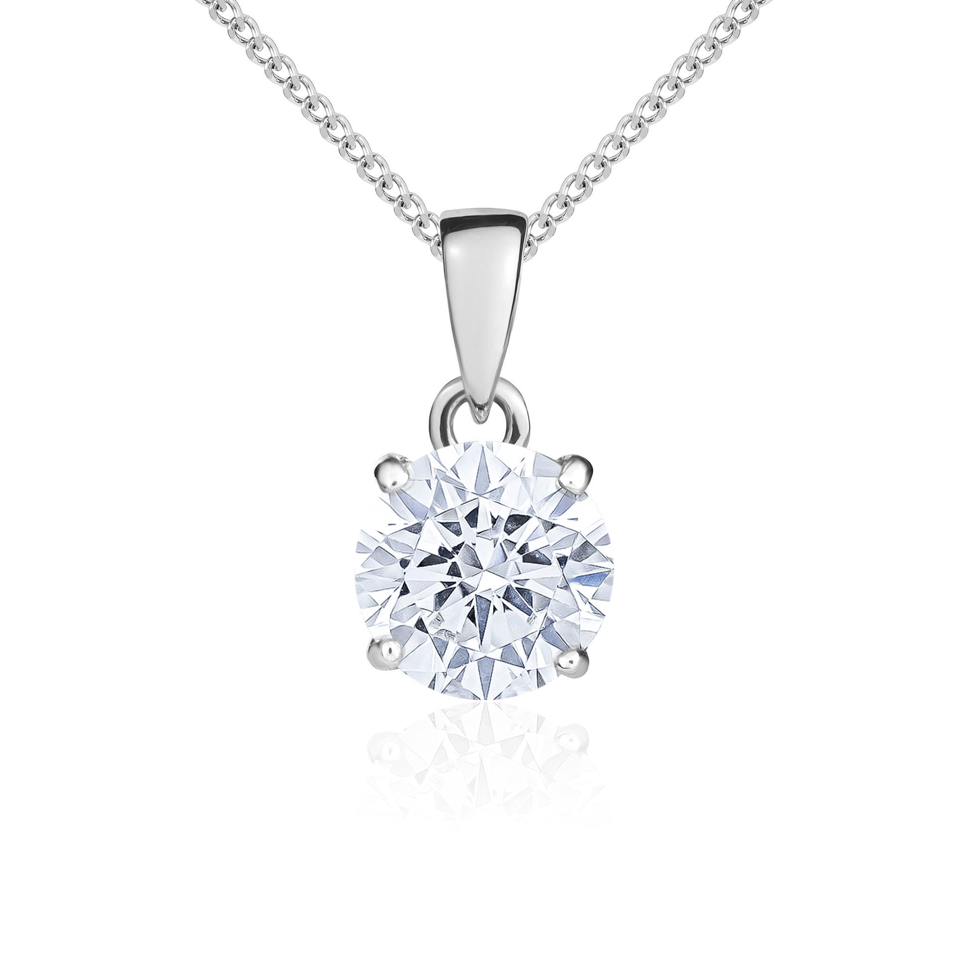 9CT White Gold Round Cubic Zirconia CZ Pendant 7mm