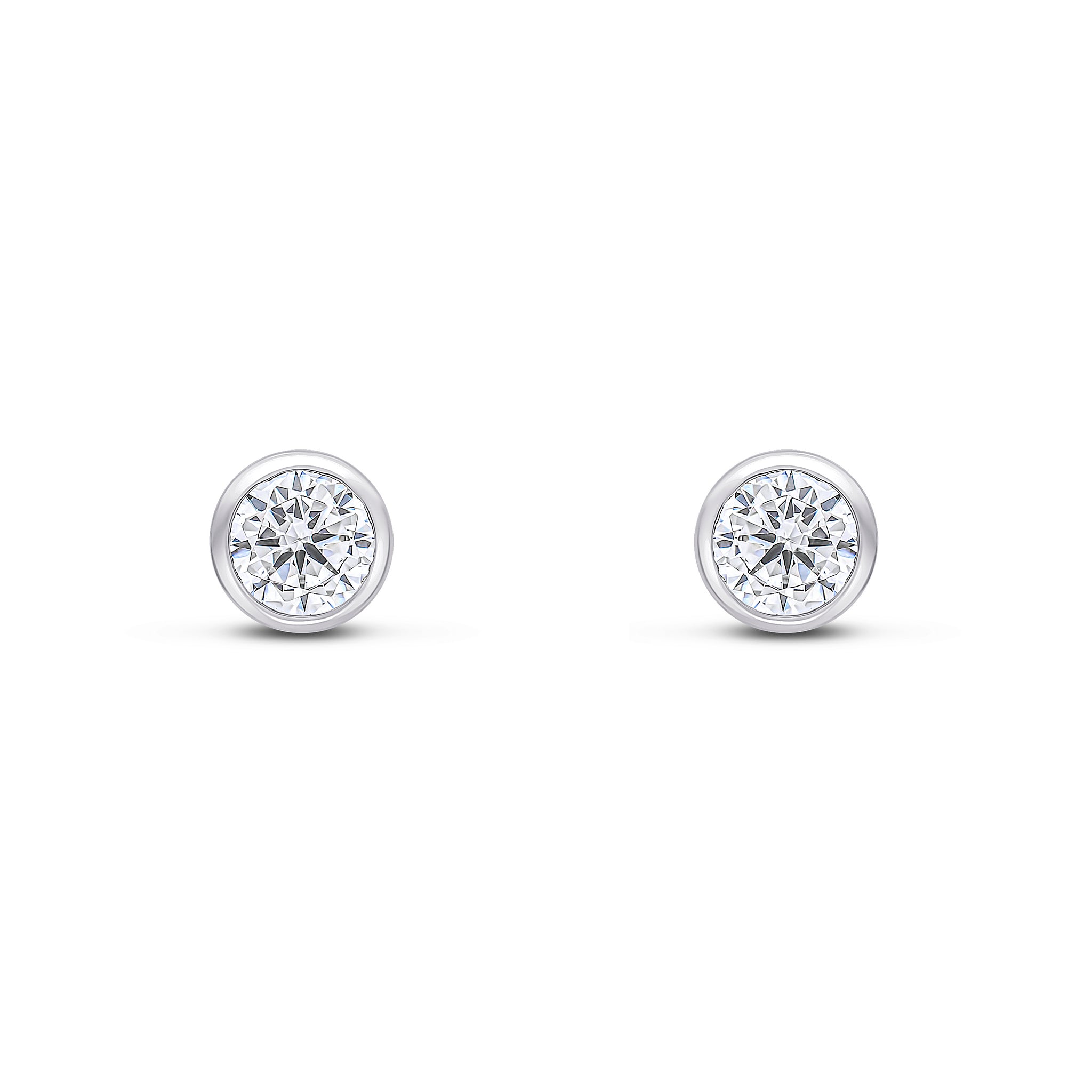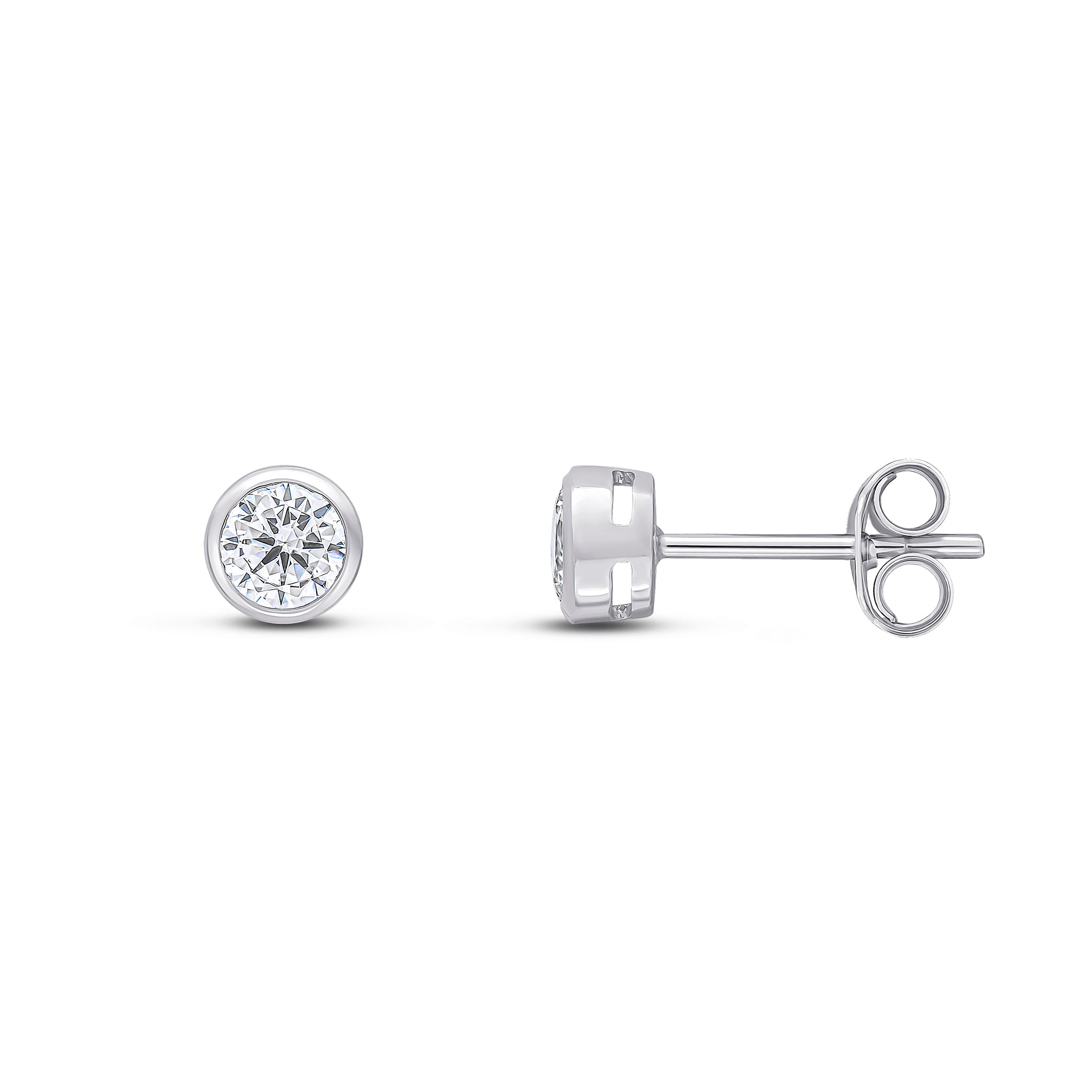 9CT White Gold Round CZ Cubic Zirconia Rubover Stud Earrings 4mm