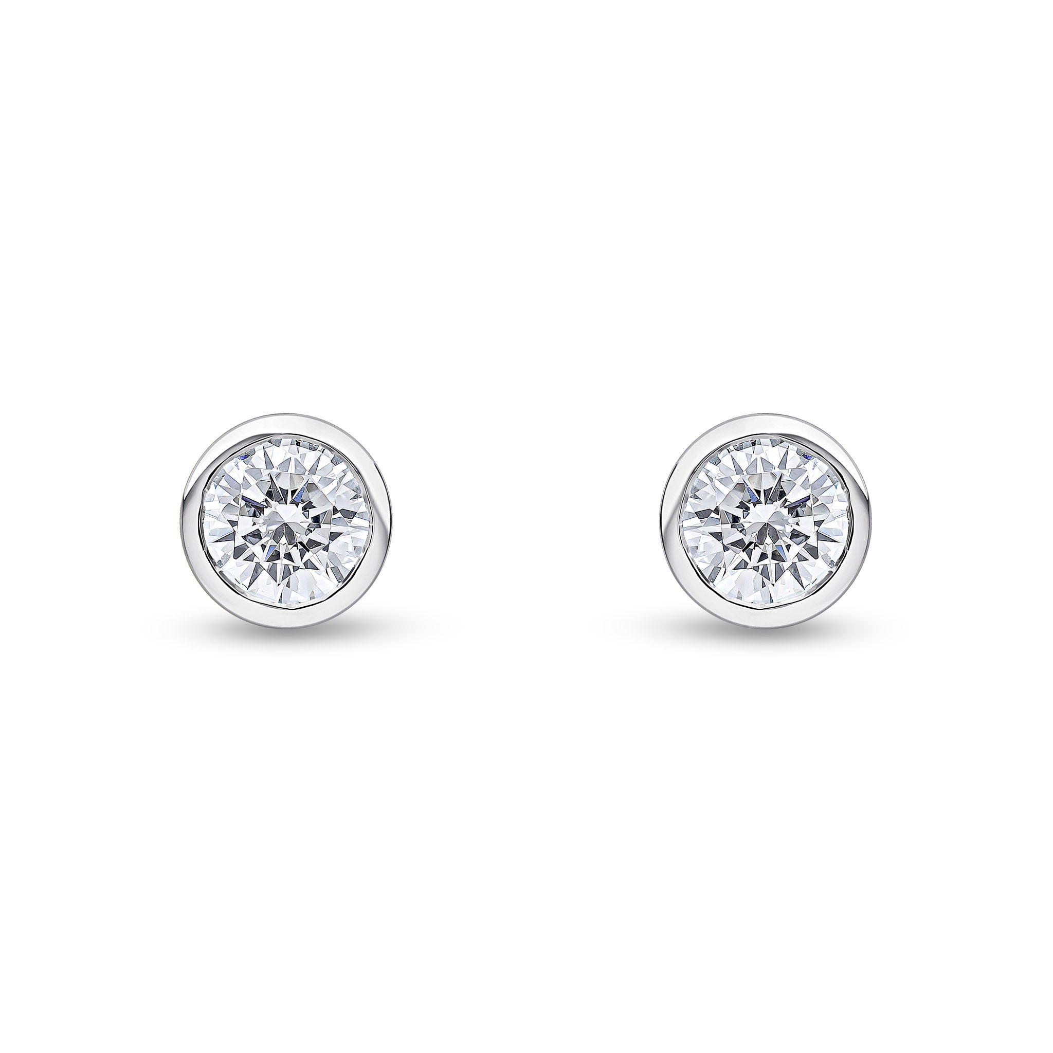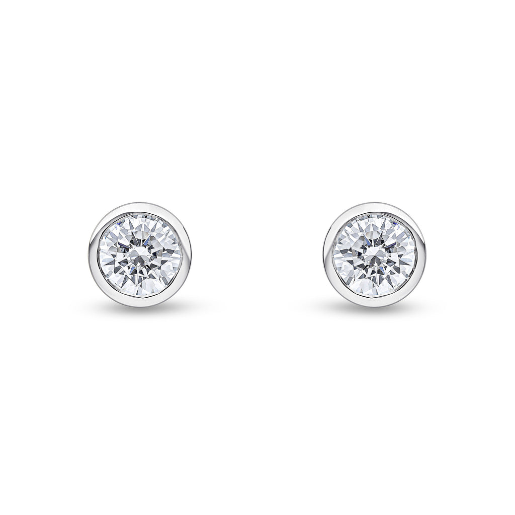 9CT White Gold Round CZ Cubic Zirconia Rubover Stud Earrings 6mm