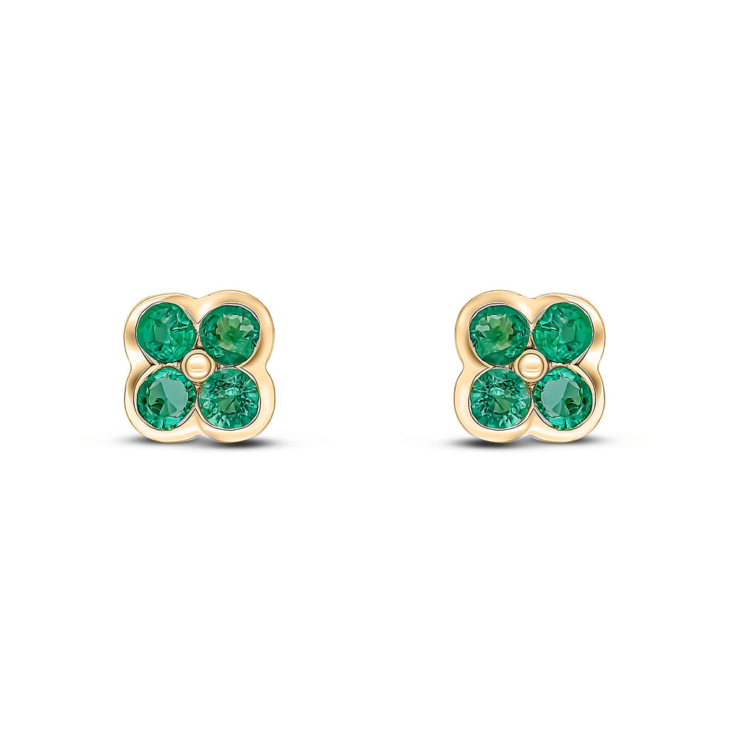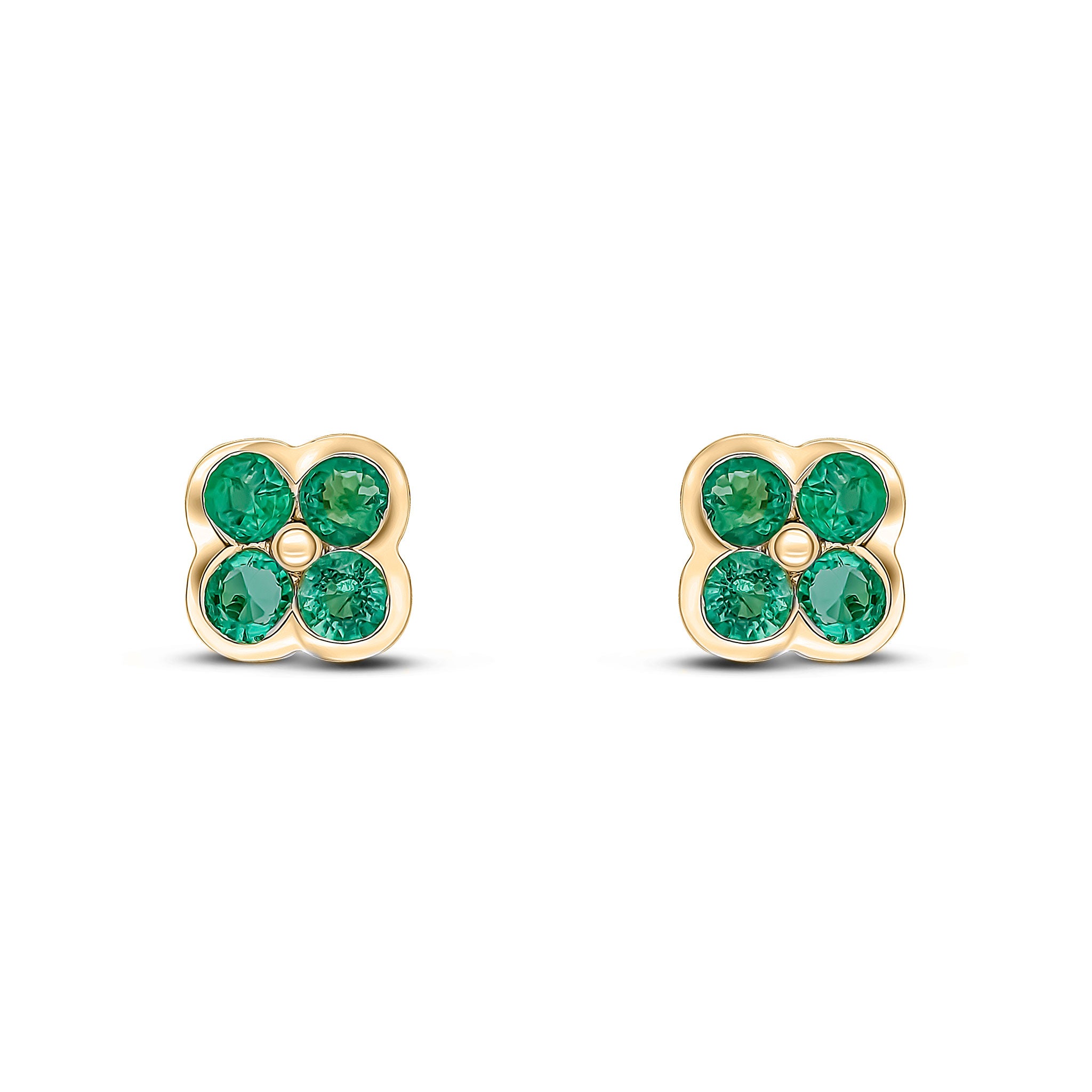 9CT Yellow Gold Round Emerald Four Stone Rubover Stud Earrings