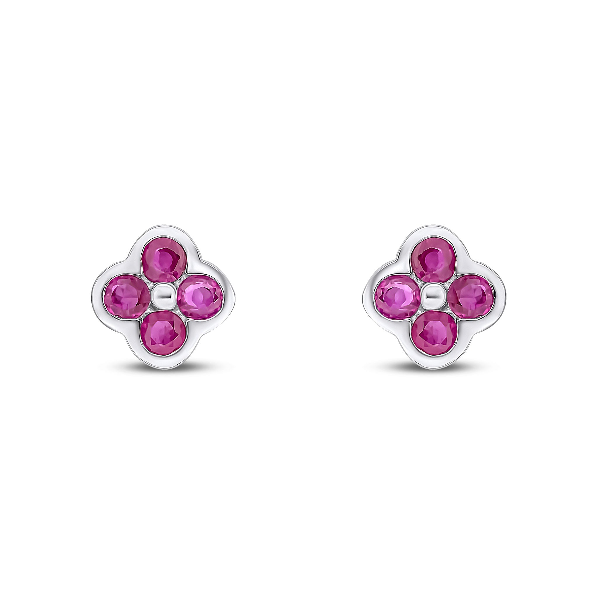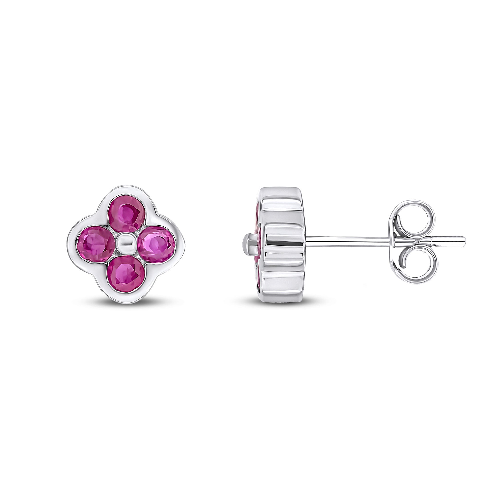 9CT White Gold Round Ruby Four Stone Rubover Stud Earrings