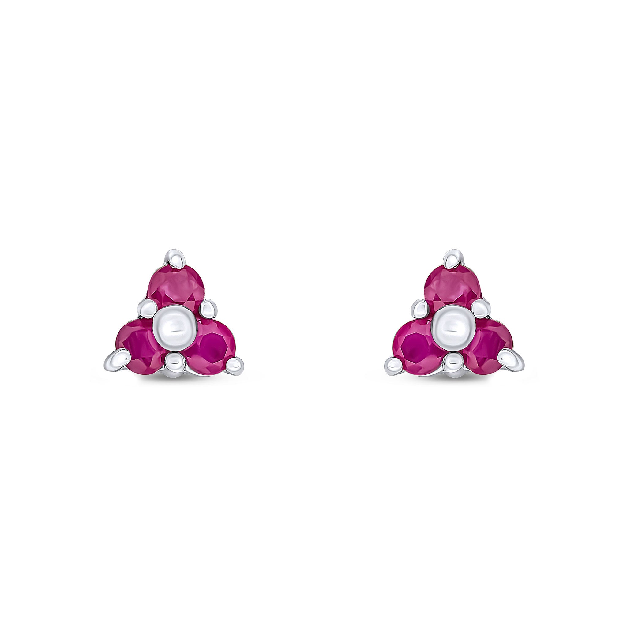 9CT White Gold Round Ruby Trefoil Stud Earrings