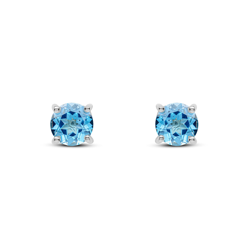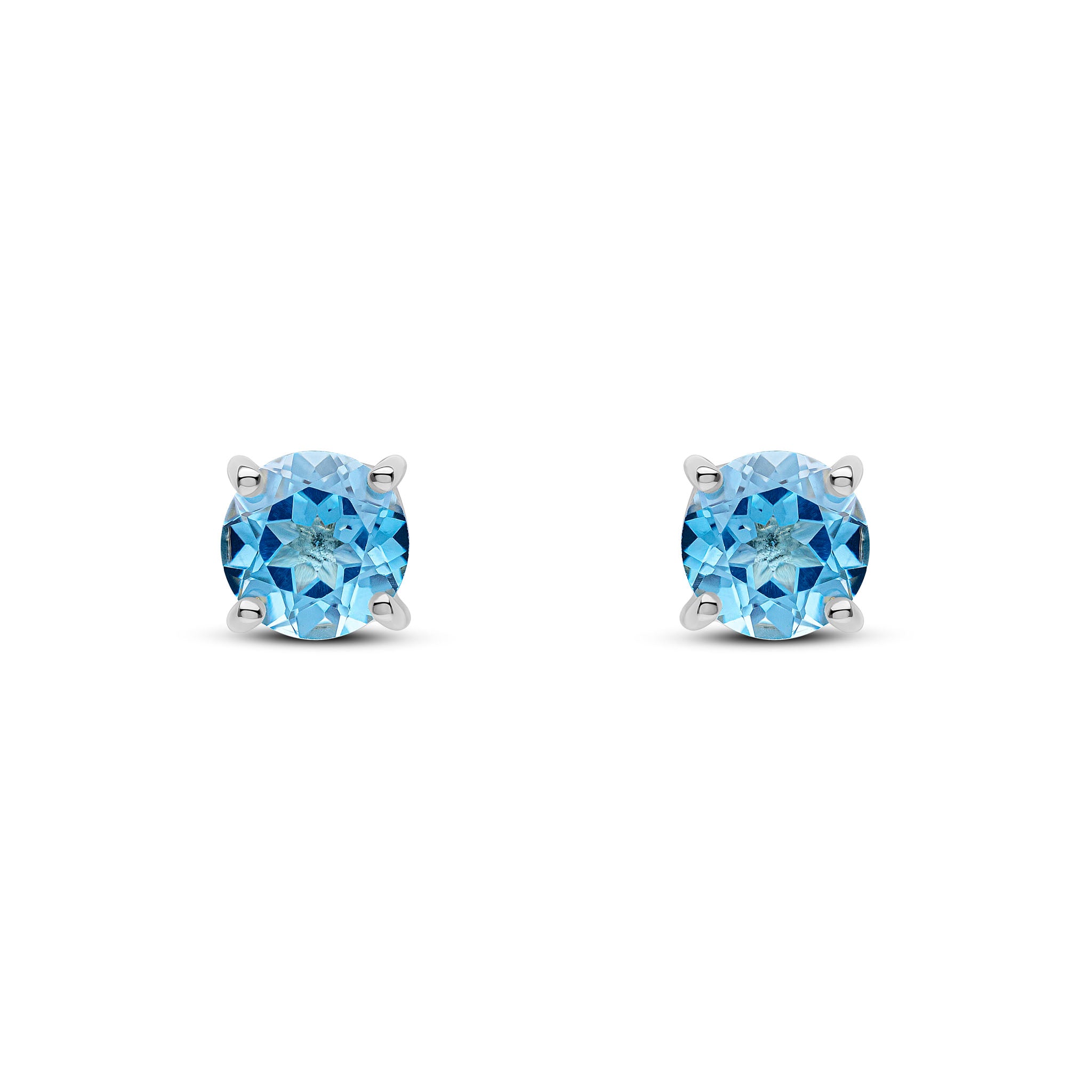 9CT White Gold Round Swiss Blue Topaz Claw Stud Earrings 6mm