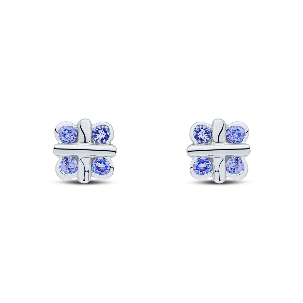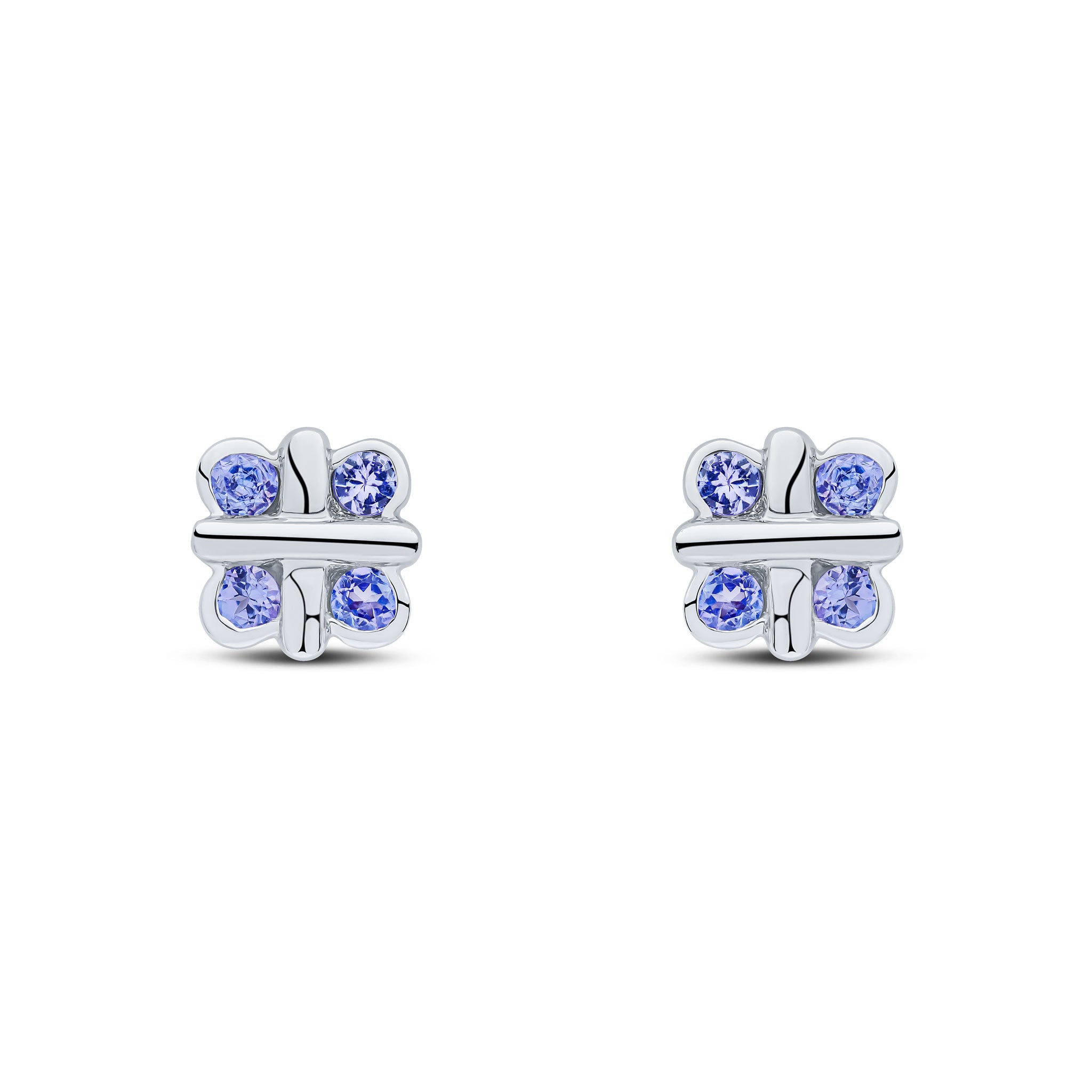 9CT White Gold Round Tanzanite Rubover Quatrefoil Stud Earrings with Cross Centre