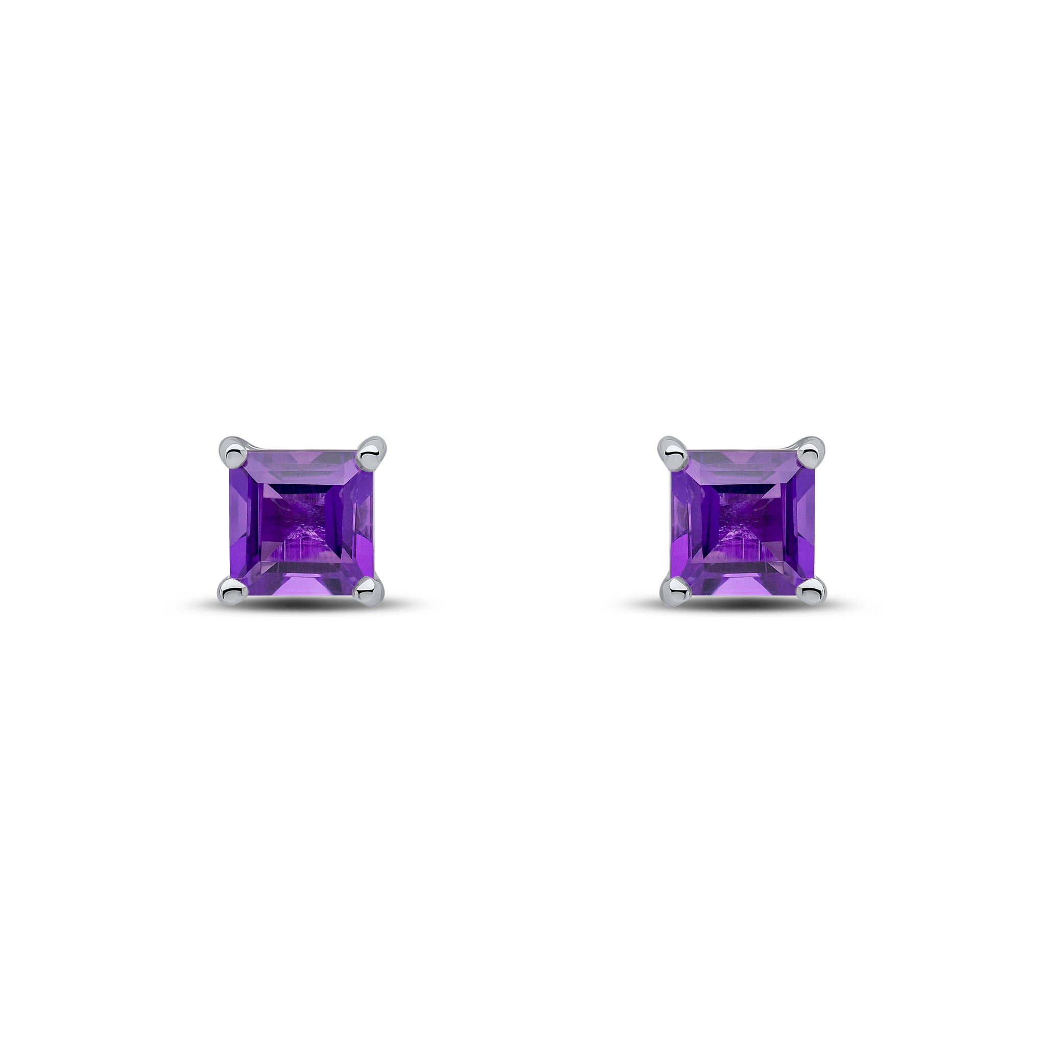 9CT White Gold Square Amethyst Claw Stud Earrings 5mm