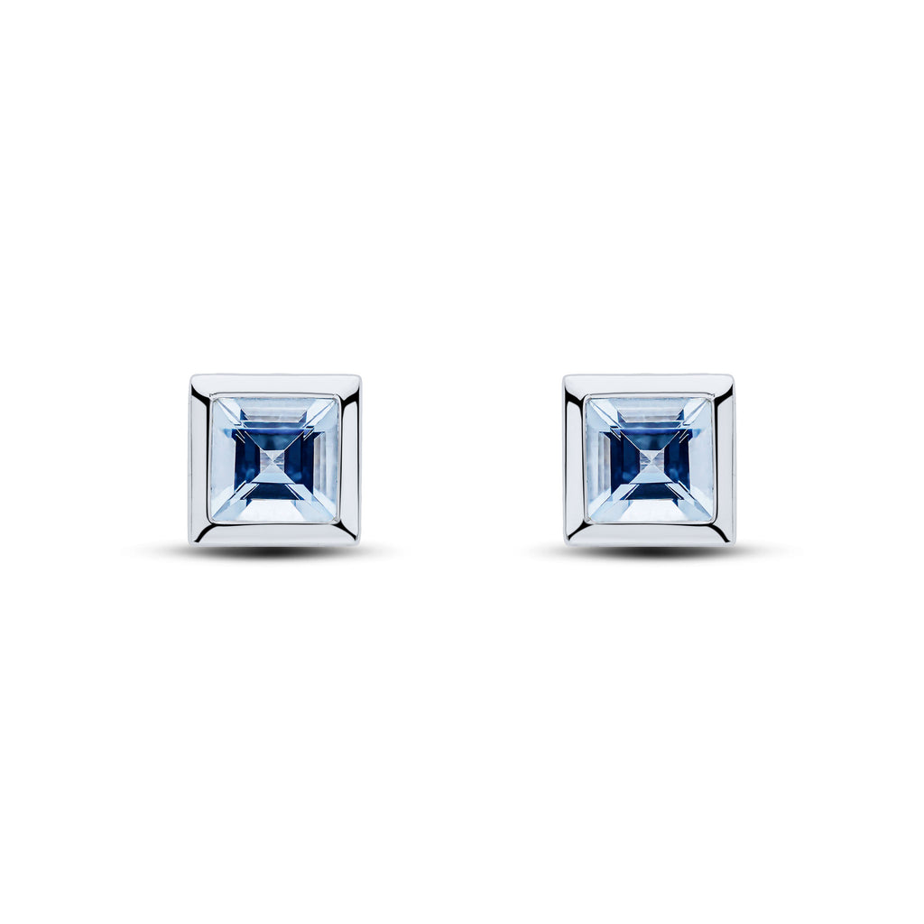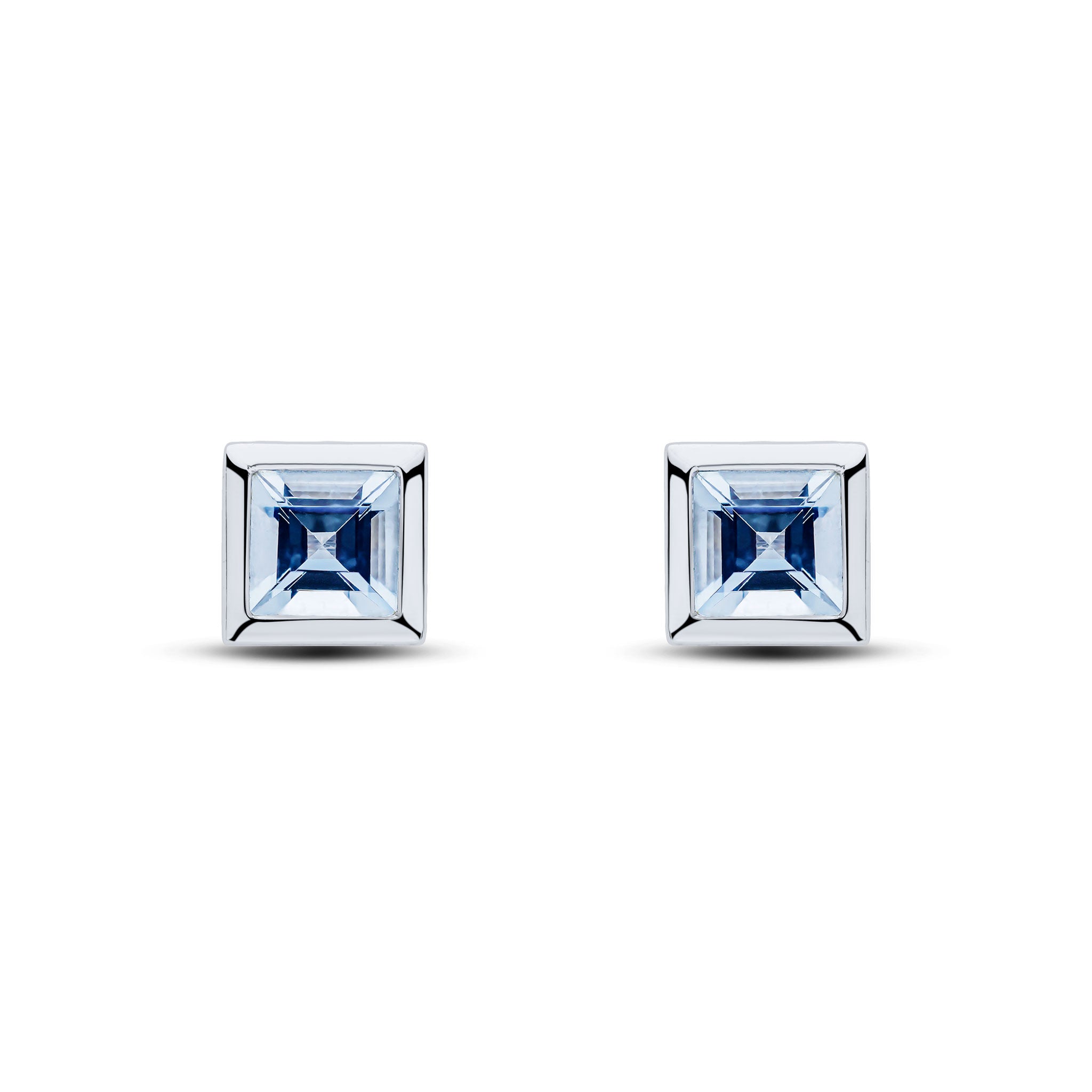 9CT White Gold Square Aquamarine Rubover Stud Earrings 5mm
