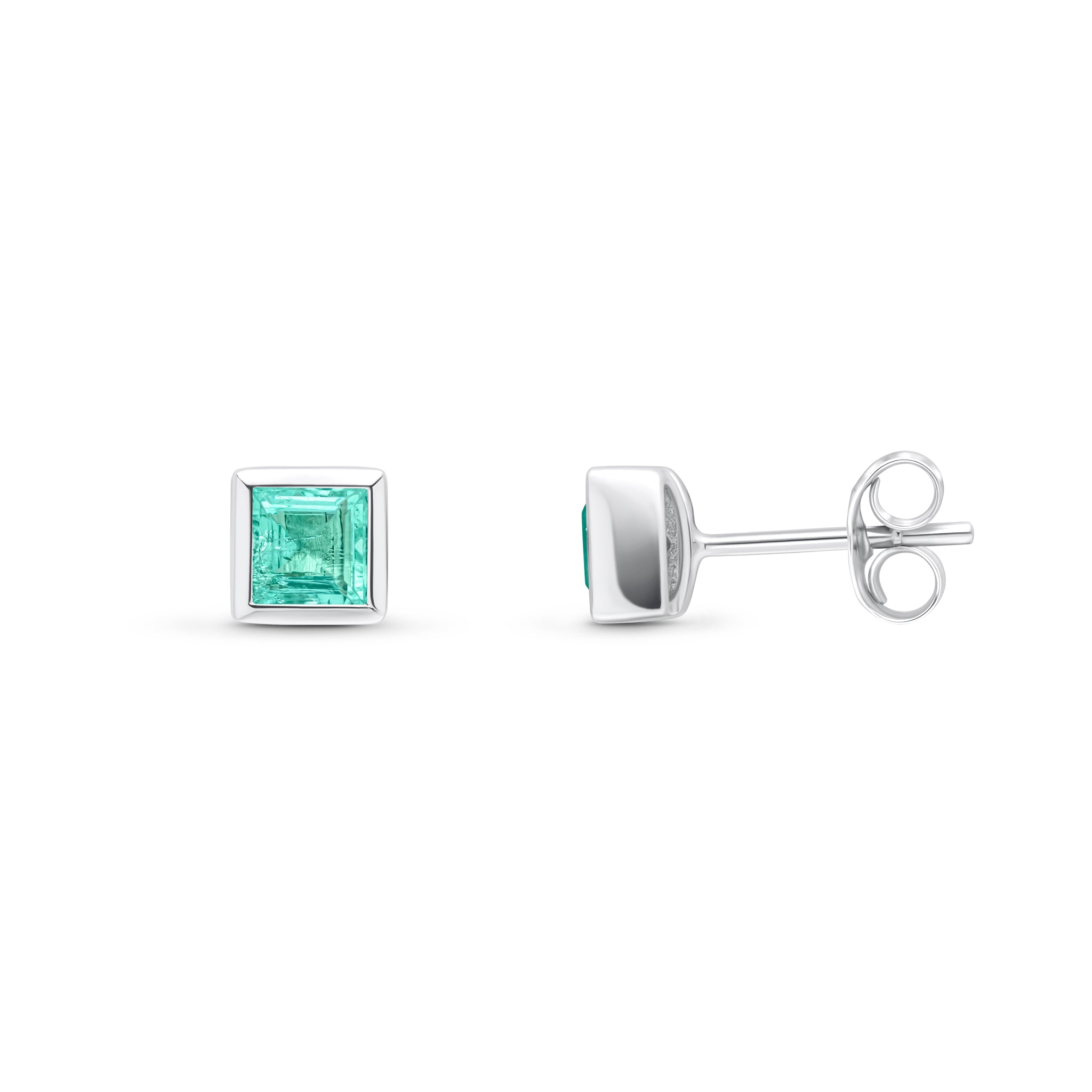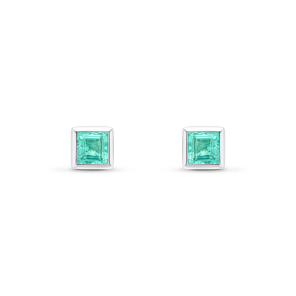 9CT White Gold Square Emerald Rubover Stud Earrings 4mm