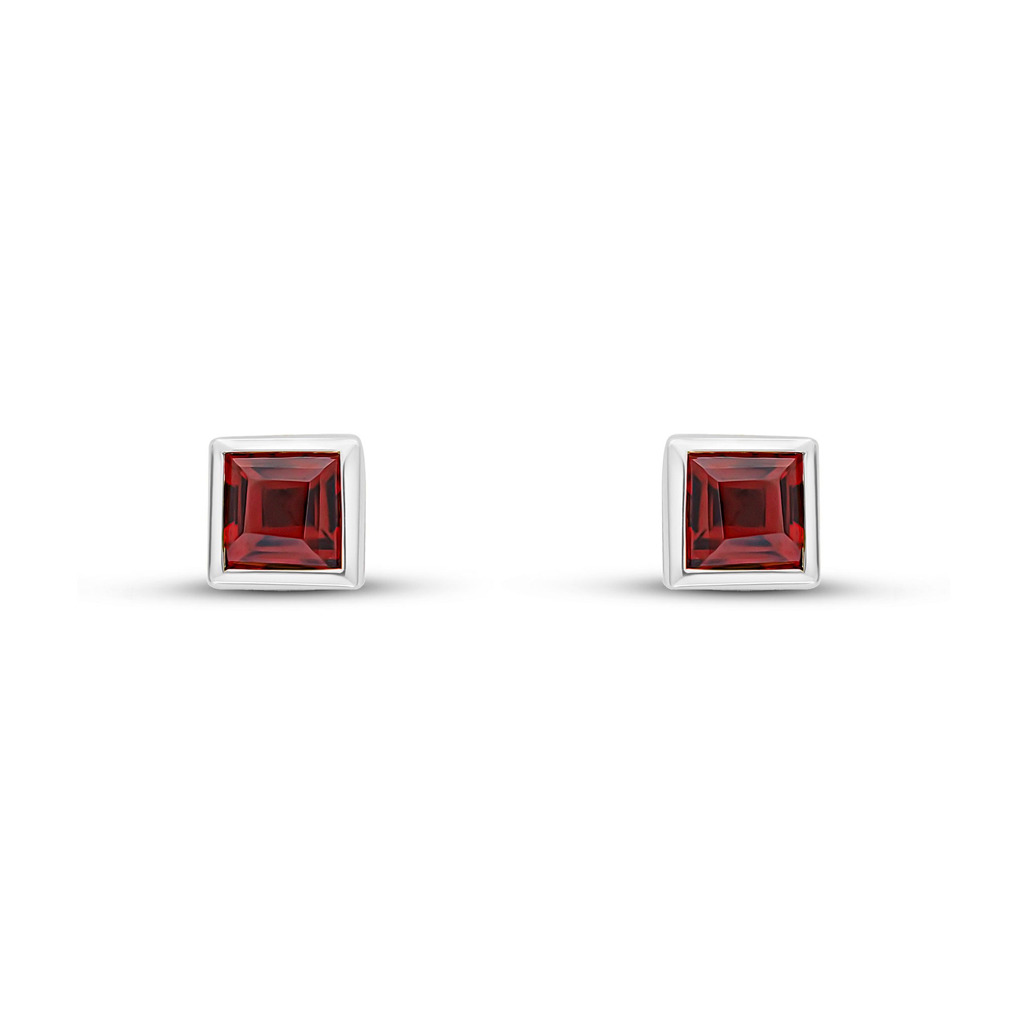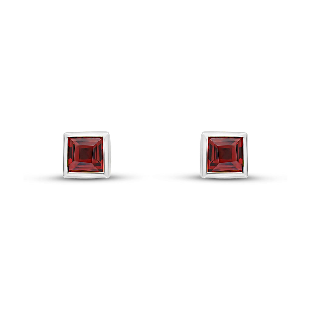 9CT White Gold Square Garnet Rubover Stud Earrings 3mm